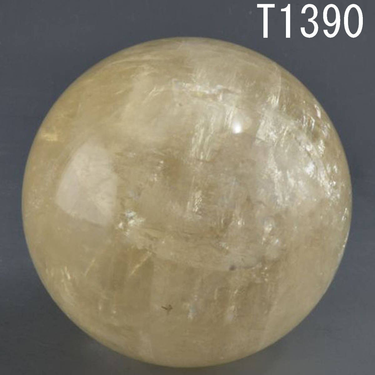 T01390 黄金色 天然水晶球 約1403g:真作