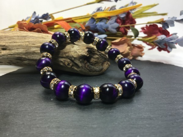 こちらは、12mm玉のパープルタイガーアイを使用した天然石ブレスレットです。石との間にはロンデルを挟み高級感を演出しています。シンプルなデザインですのでどんなコーディネートとも合わせ易いブレスレットです。石大きさは12mm玉です。内径約18cmです。(サイズ変更の場合は取引ナビにてご連絡をお願いします。) 数に限りがございますので気になる方はお早めにどうぞ。