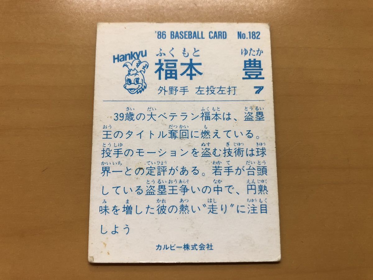 カルビープロ野球カード 1986年 福本豊(阪急) No.182