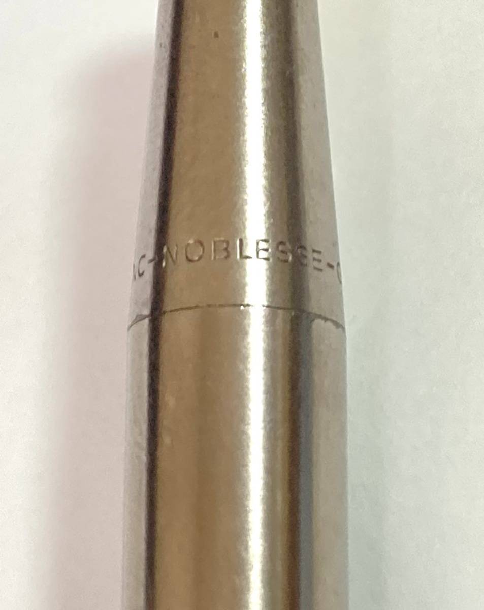 モンブラン、ノブレス、ノック式ボールペン、ステンレスです。細身の書きやすさが特徴のボールペンです。キャップの上部をプッシュして芯を格納するタイプのお品です。インクの残量はありませんが、機構的には、問題なく稼働するお品です。この機会ににいかがでしょうか?
