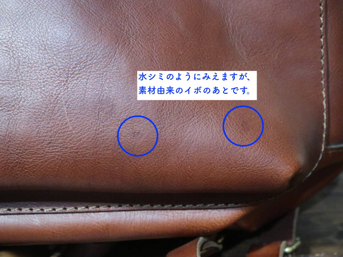 ※数カ所に水滴シミのようなものがありますが、イボや傷などの素材由来の繊維に染料が多く入り込んだ模様になります。
