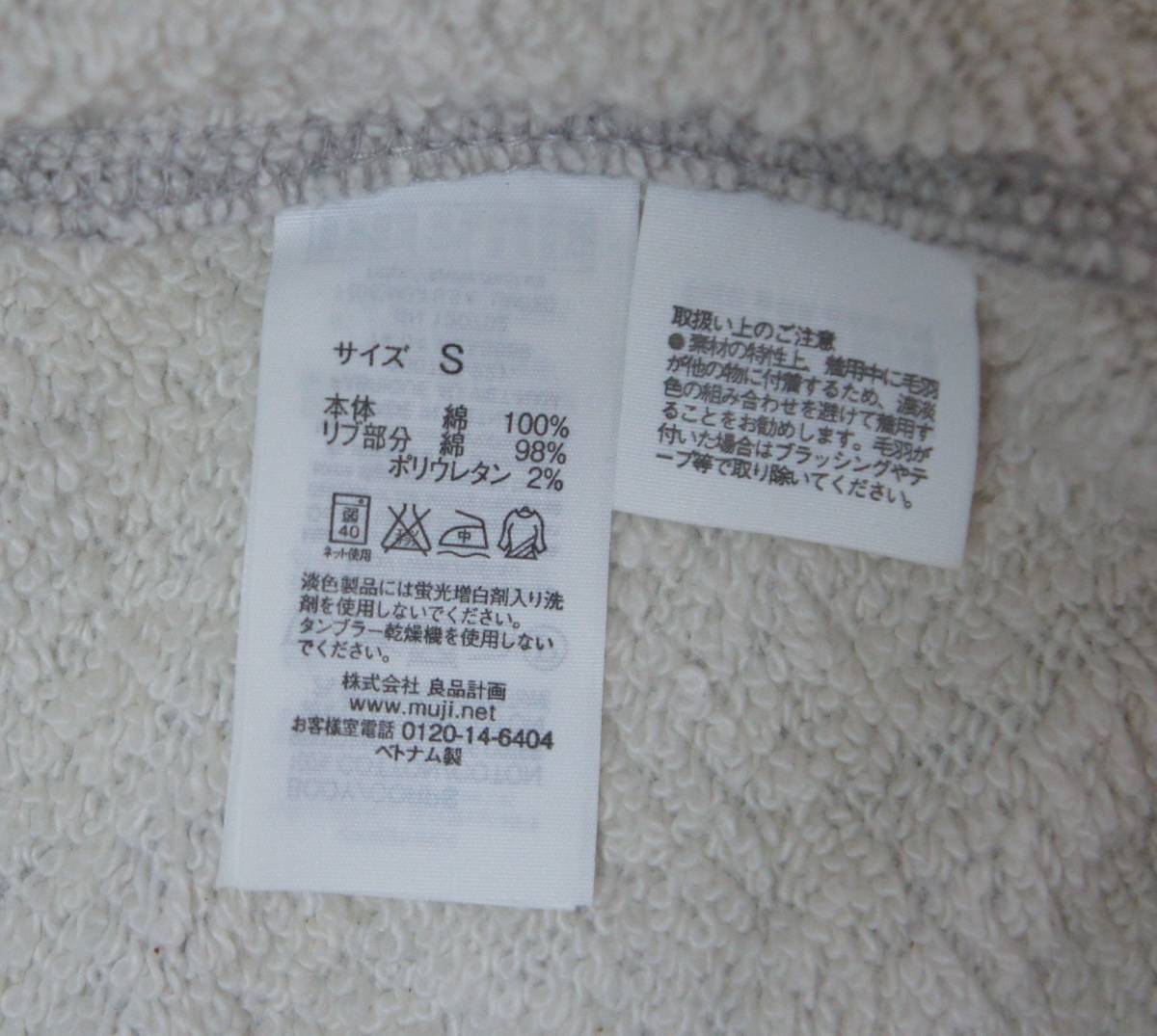 MUJI 無印良品 良品計画 ジップアップパーカー Sサイズ 灰色 ライトグレー スウェット コットン