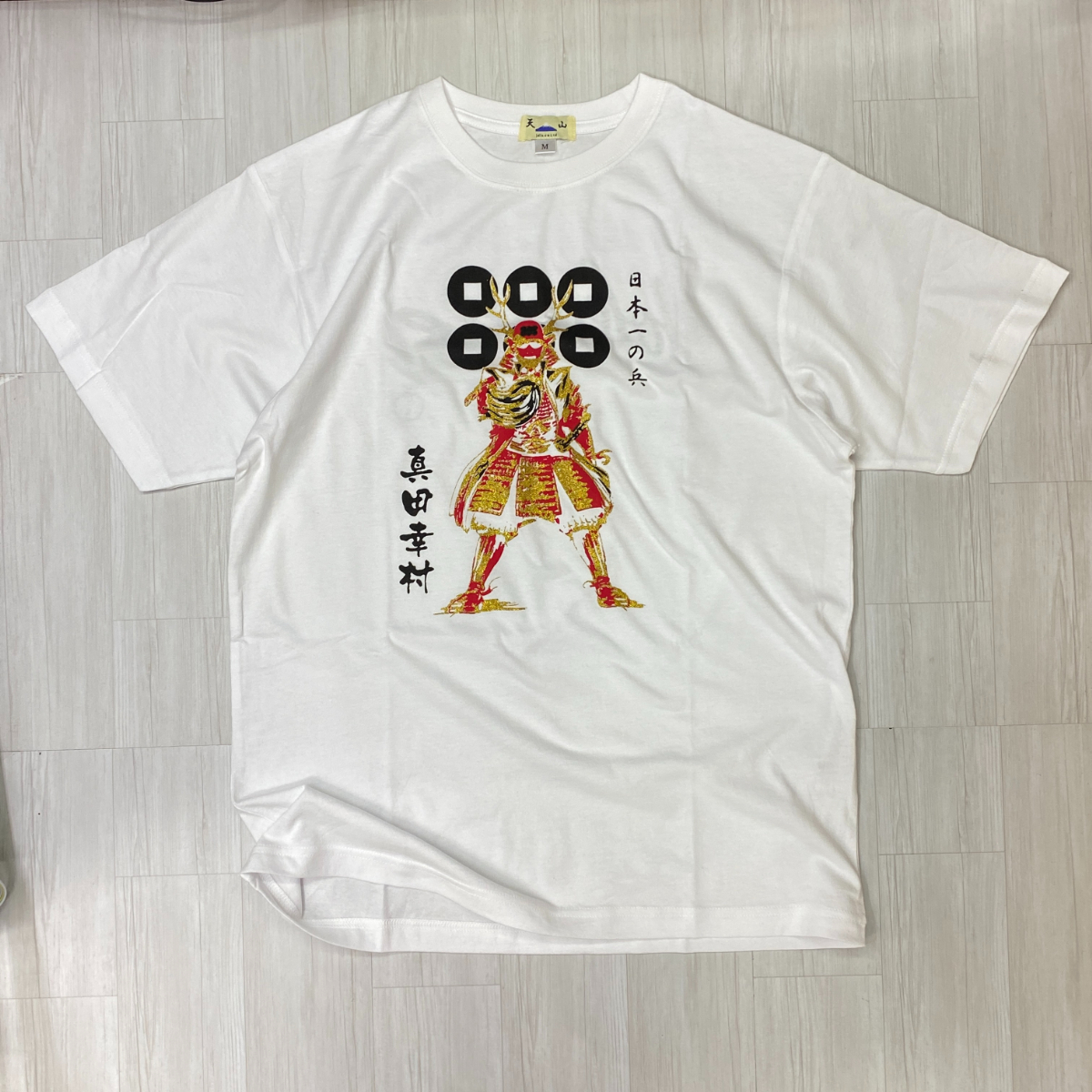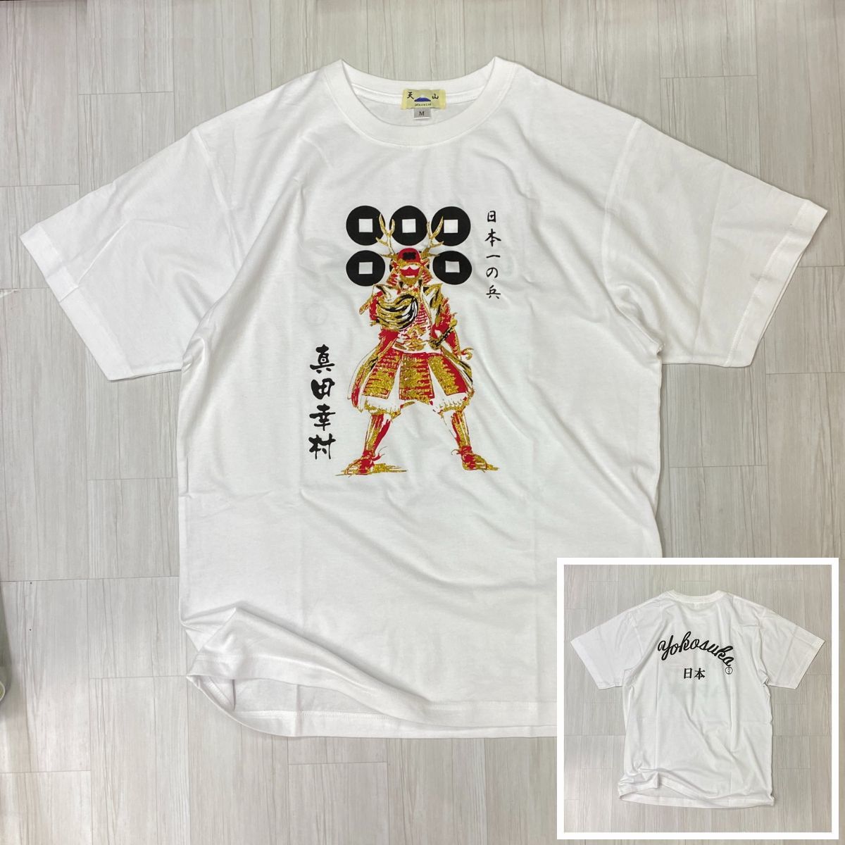 限定 【3L】 横須賀名物 YOKOSUKA 横須賀 和柄Tシャツ 戦国武将 真田幸村 SANADA 家紋 六文銭 ゴールドラメ 日本 スカT 白 (JPT18)
