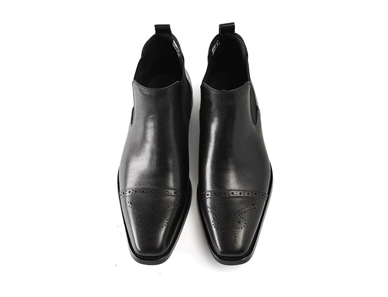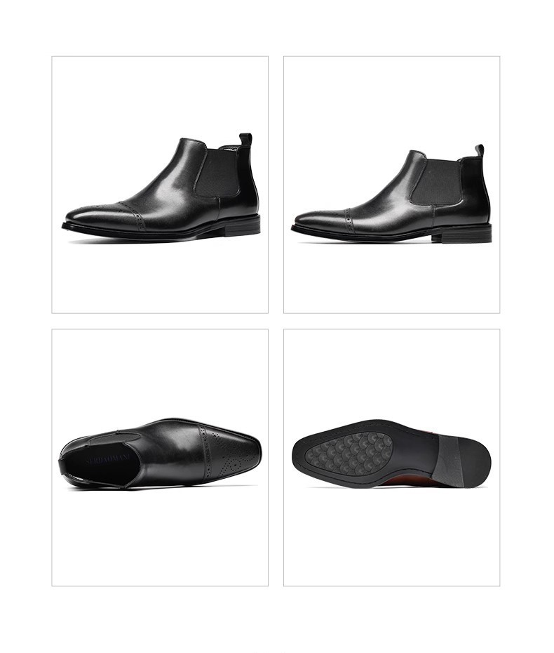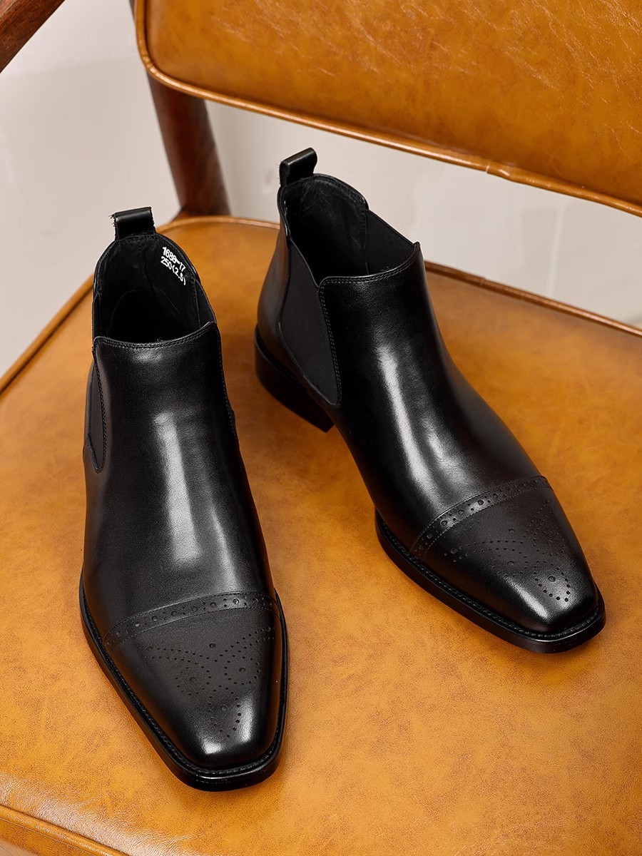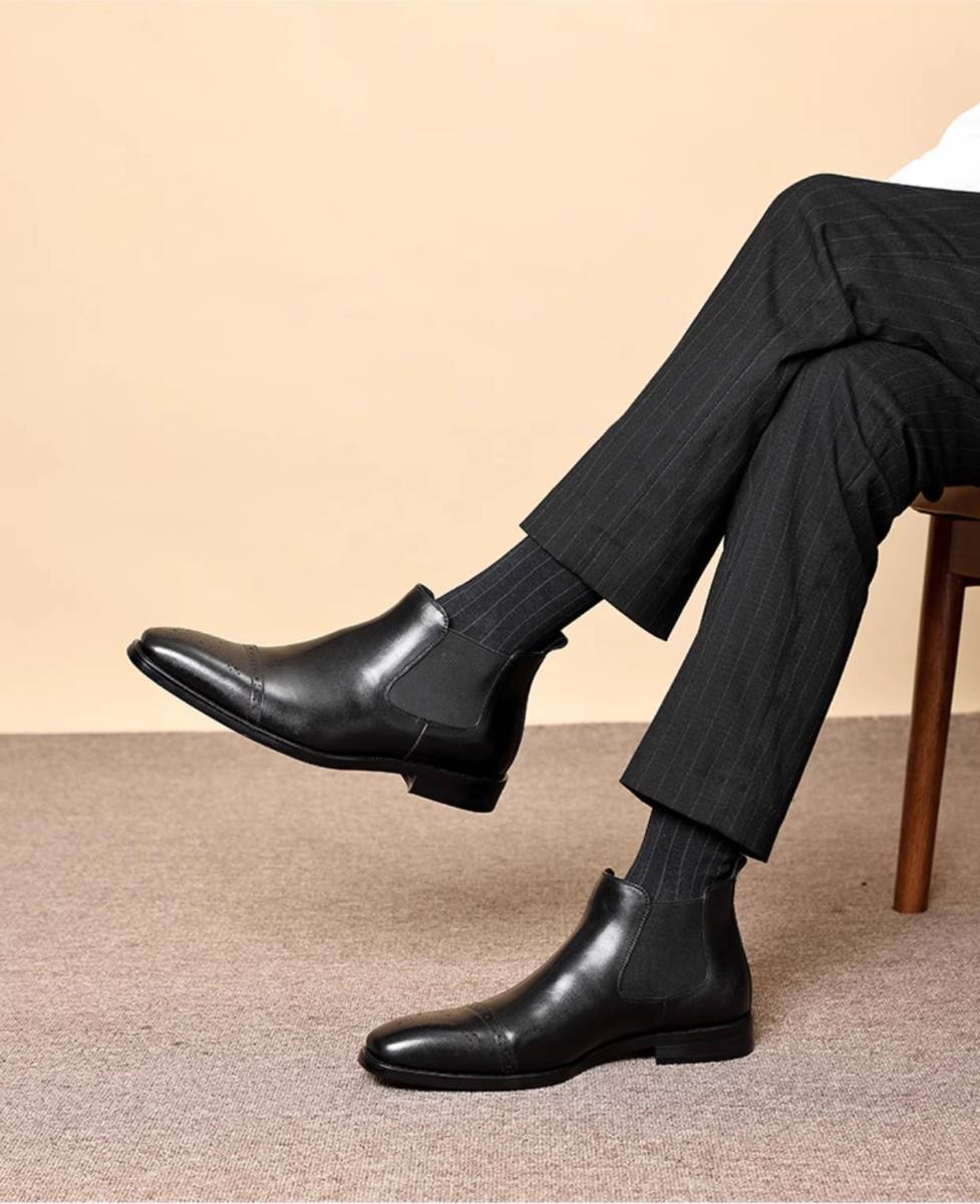 New☆ 新品本革メンズショートサイドゴアブーツ ゴム 脱ぎ履きが簡単♪天然皮革 ☆☆ブラック 26.5cm SE