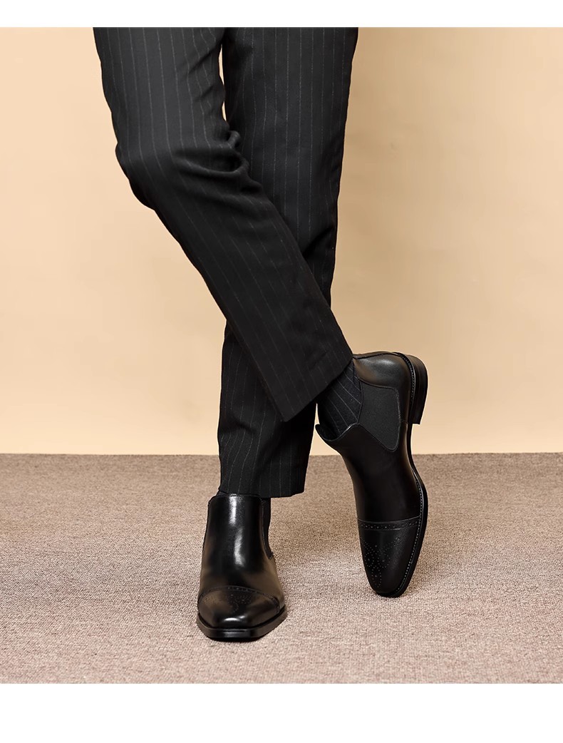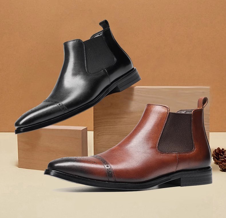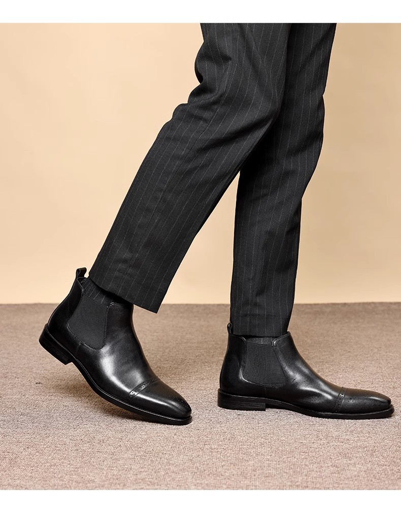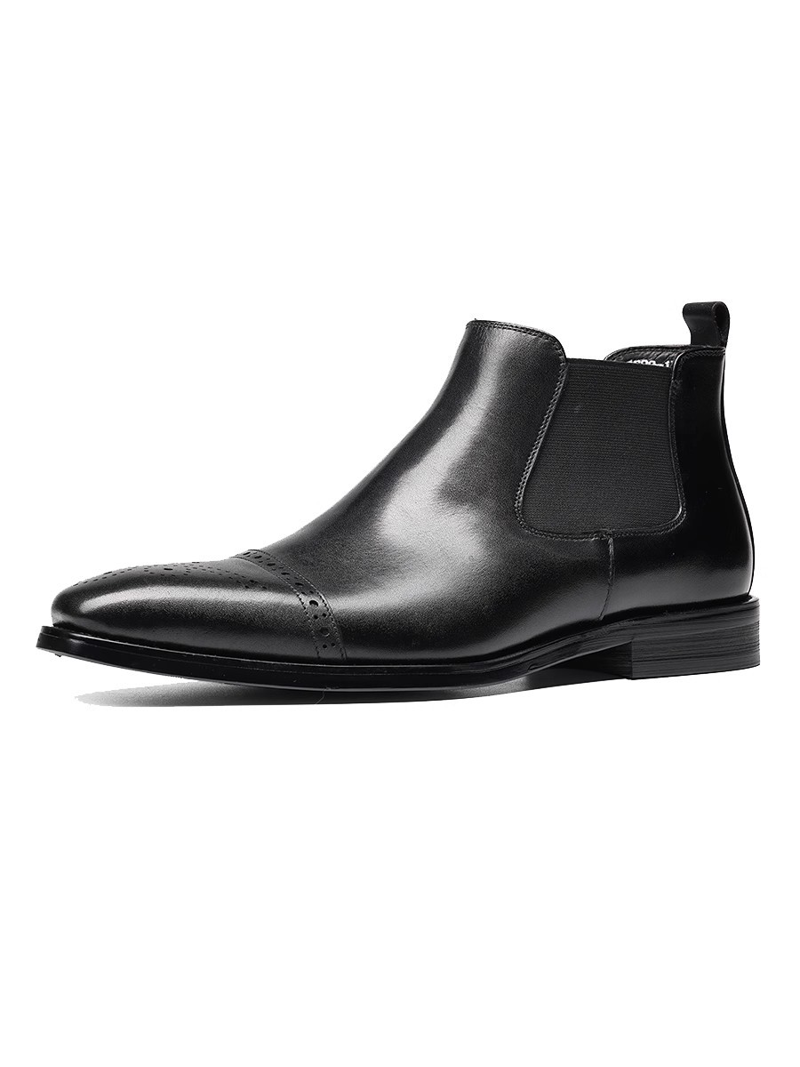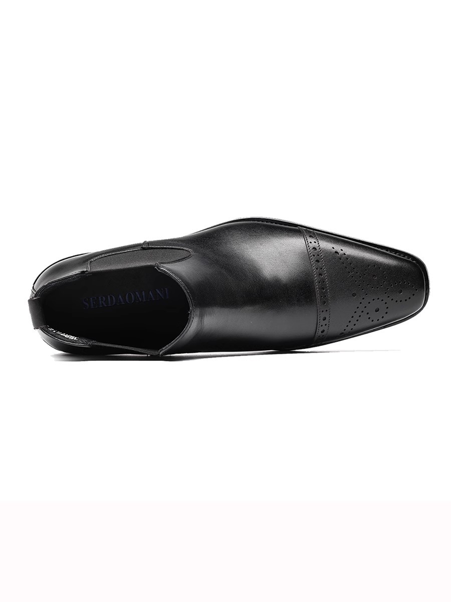 New☆ 新品本革メンズショートサイドゴアブーツ ゴム 脱ぎ履きが簡単♪天然皮革 ☆☆ブラック 26.5cm SE