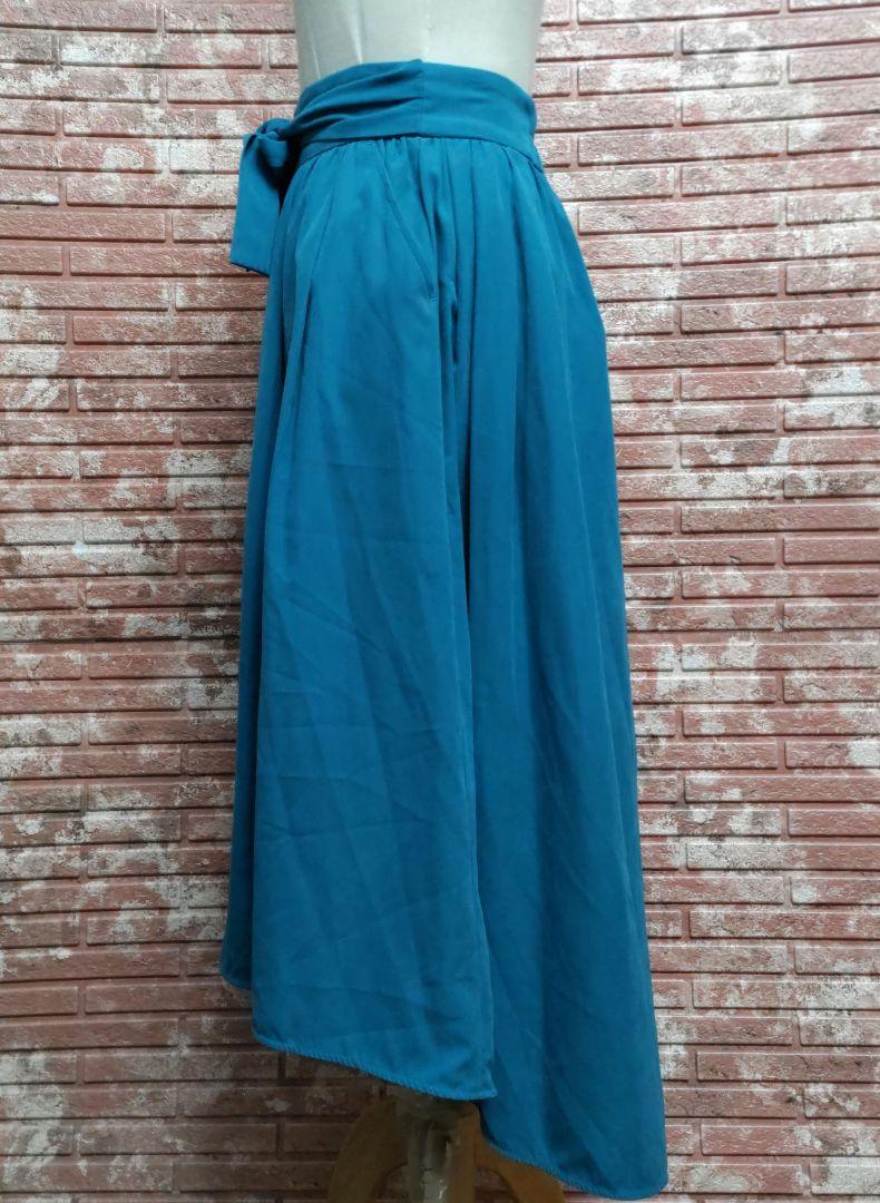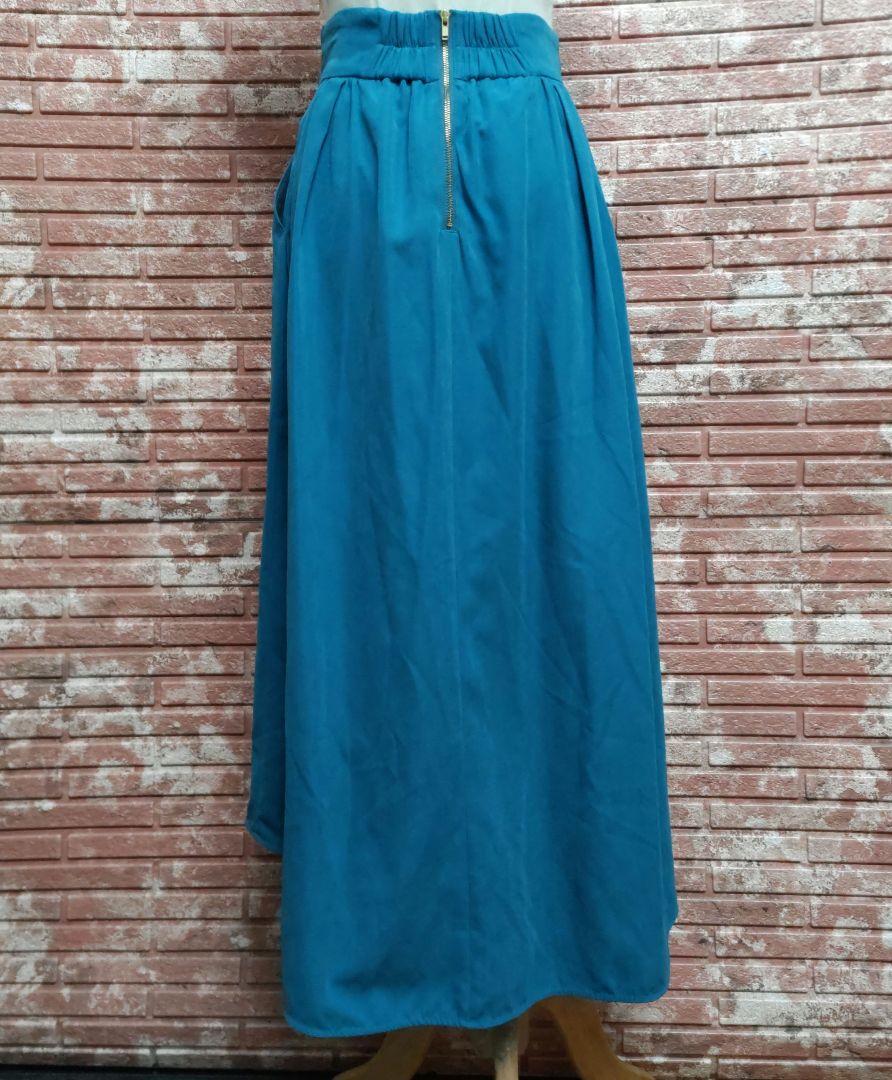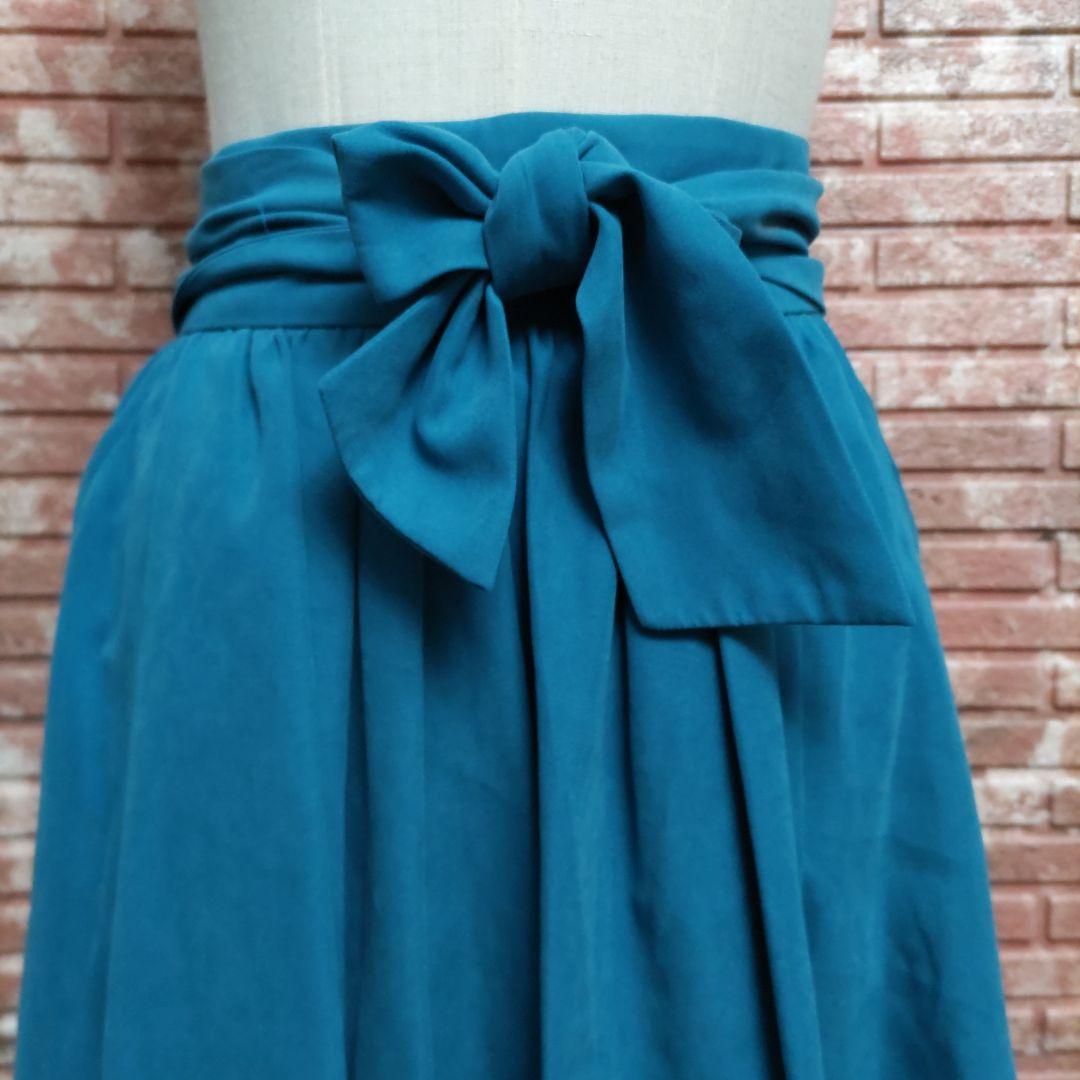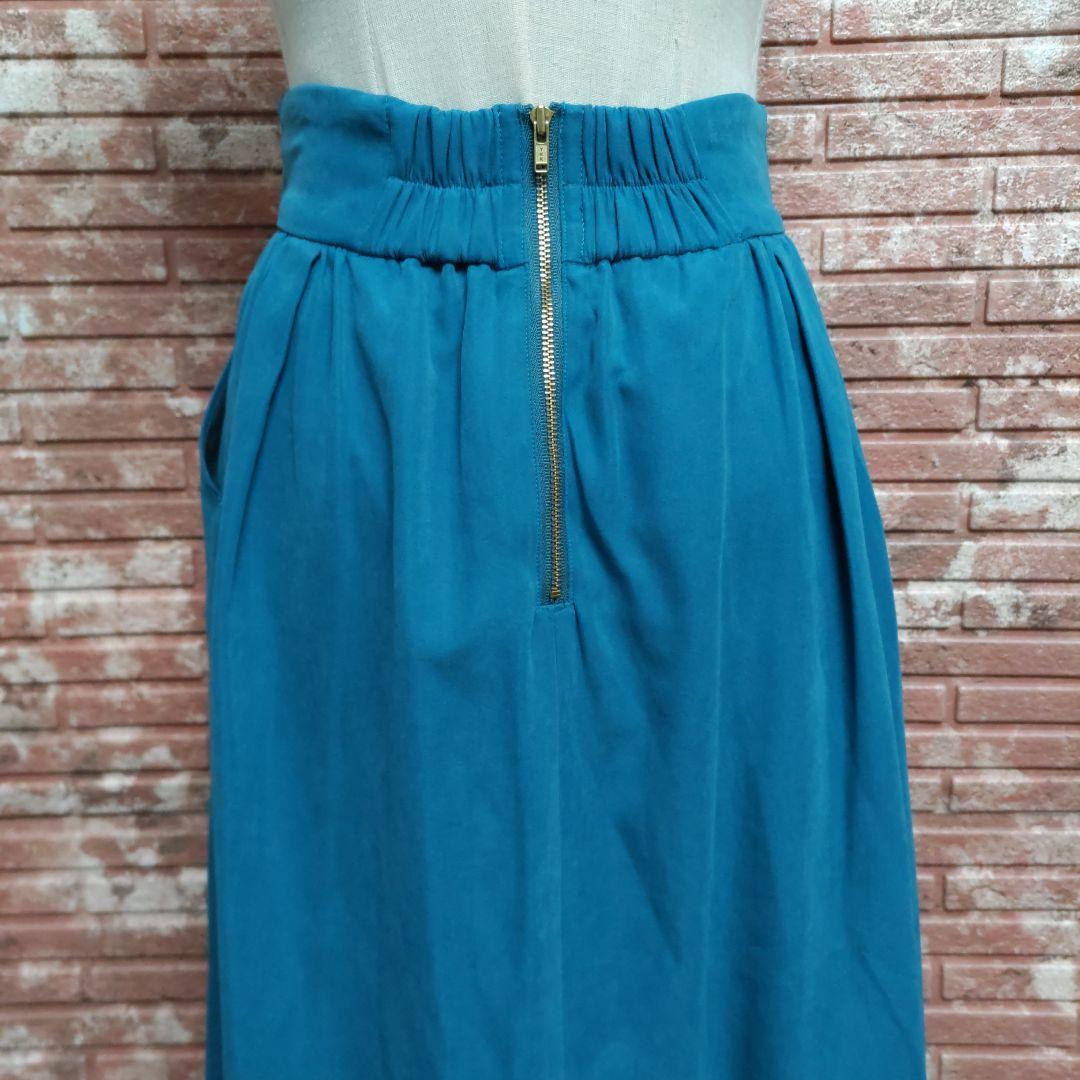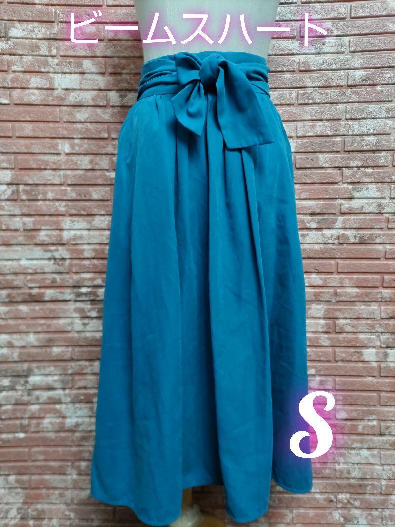 ビームスハート リボンベルト付き ロングギャザースカート ブルー Sサイズ