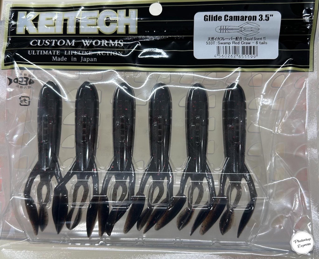 | ケイテック グライドカマロン 3.5インチ。重量:9.5g、 1パック6本入り。 これが、ケイテックのバックスライド“専用”ワーム バックスライド仕様の高比重ワームが釣れる理由のひとつに、文字どおり後方へのスライドフォールが挙げられます。同じカバー攻略でも、それはジグやテキサスリグにはけっして真似のできない芸当。 いや、数多あるなかで、アングラーから逆の方向へと慣性が働くルアー自体、たぐいまれ。 だから『グライドカマロン』の開発は、“いかにバックスライドさせるか”に重きを置きました。 魚にこたえを聞いた理想的なフォール姿勢とスライド幅は、ハサミやヒゲを含めたボディデザインとマテリアルのたまもの。 もちろん、フォール後のボトムステイやロッドワークでアクションを与えた際の挙動、カバーの抜け方(抜きやすさ)、回収のしやすさも徹底的に検証しています。 オープンウォーターのミドストやボトストなど、自由な発想で使い方の幅を拡げていくのは釣りの醍醐味ですが、まずはノーシンカーリグでの、バックスライドを活かしたシャローカバー攻略を強くおすすめいたします。 フックは、ワイドギャップオフセットタイプ#3/0もしくは#4/0を推奨。 |