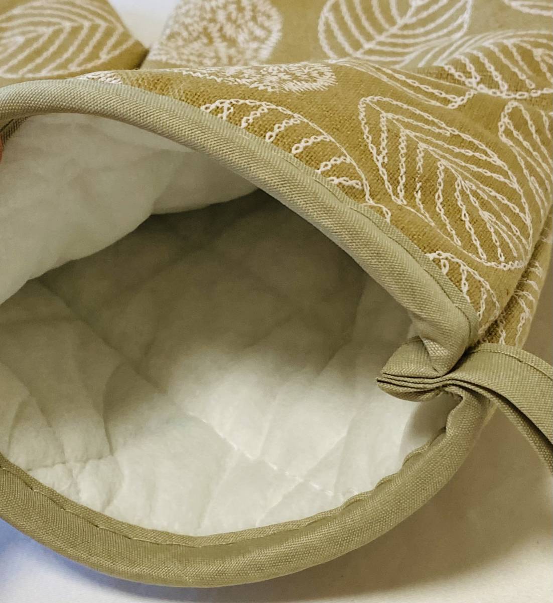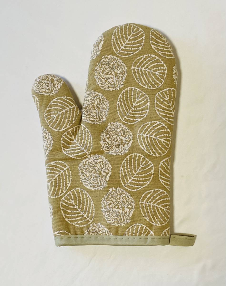 【新品】【送料込み】キッチンミトン(鍋つかみ)葉っぱ刺繍柄 ベージュ(1点)