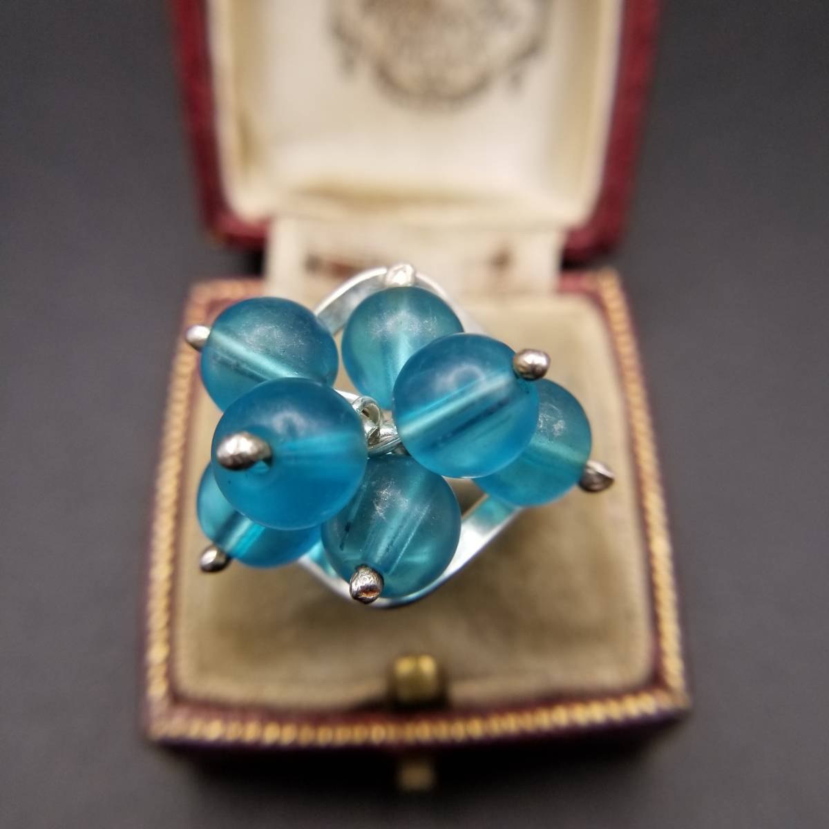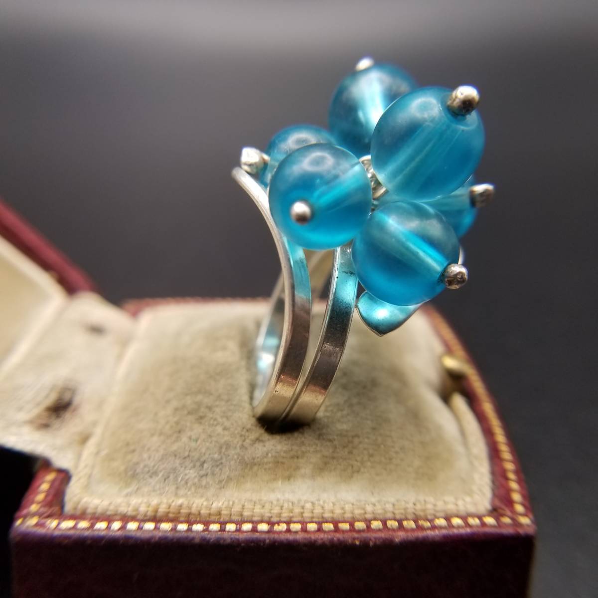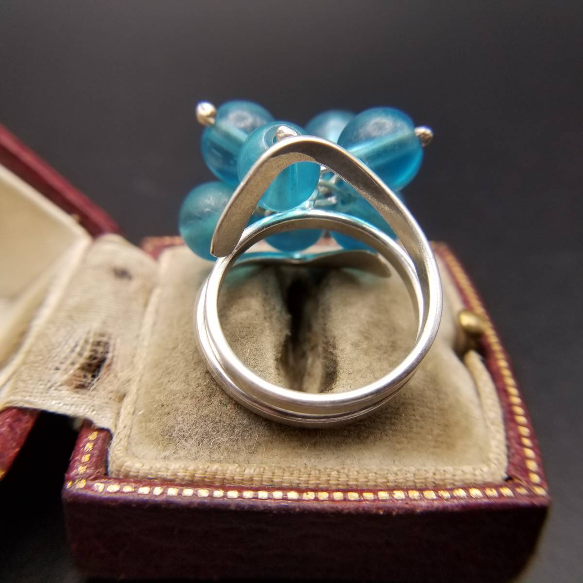ライトブルー ボール ビーズ クラスター ひねり 925 ビンテージ シルバー リング 指輪 昭和レトロ アクセサリー ジュエリー 輸入 Y8-E