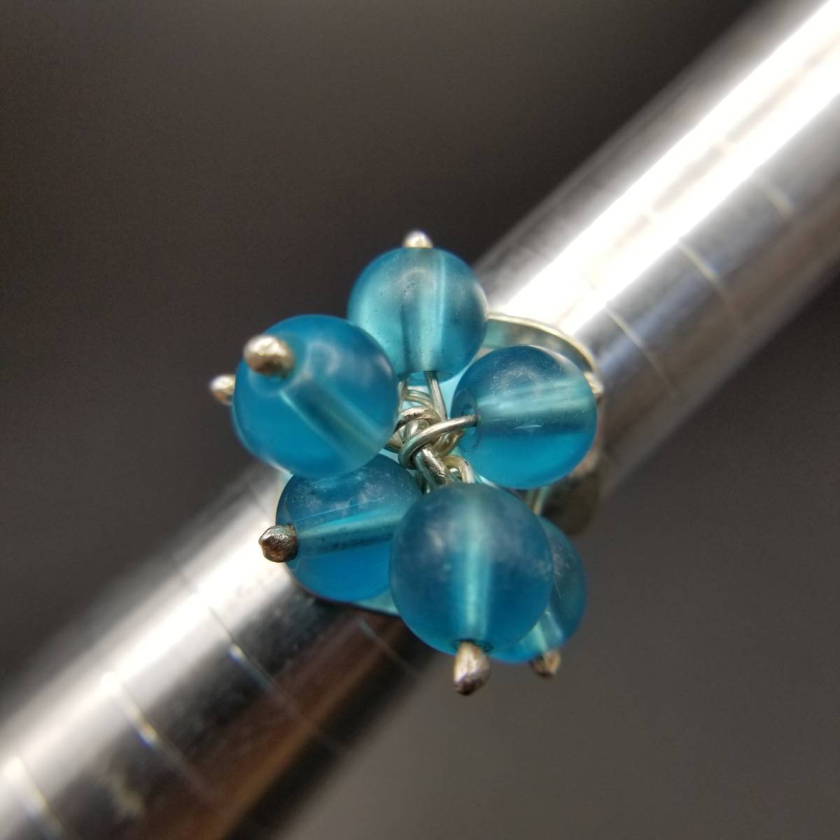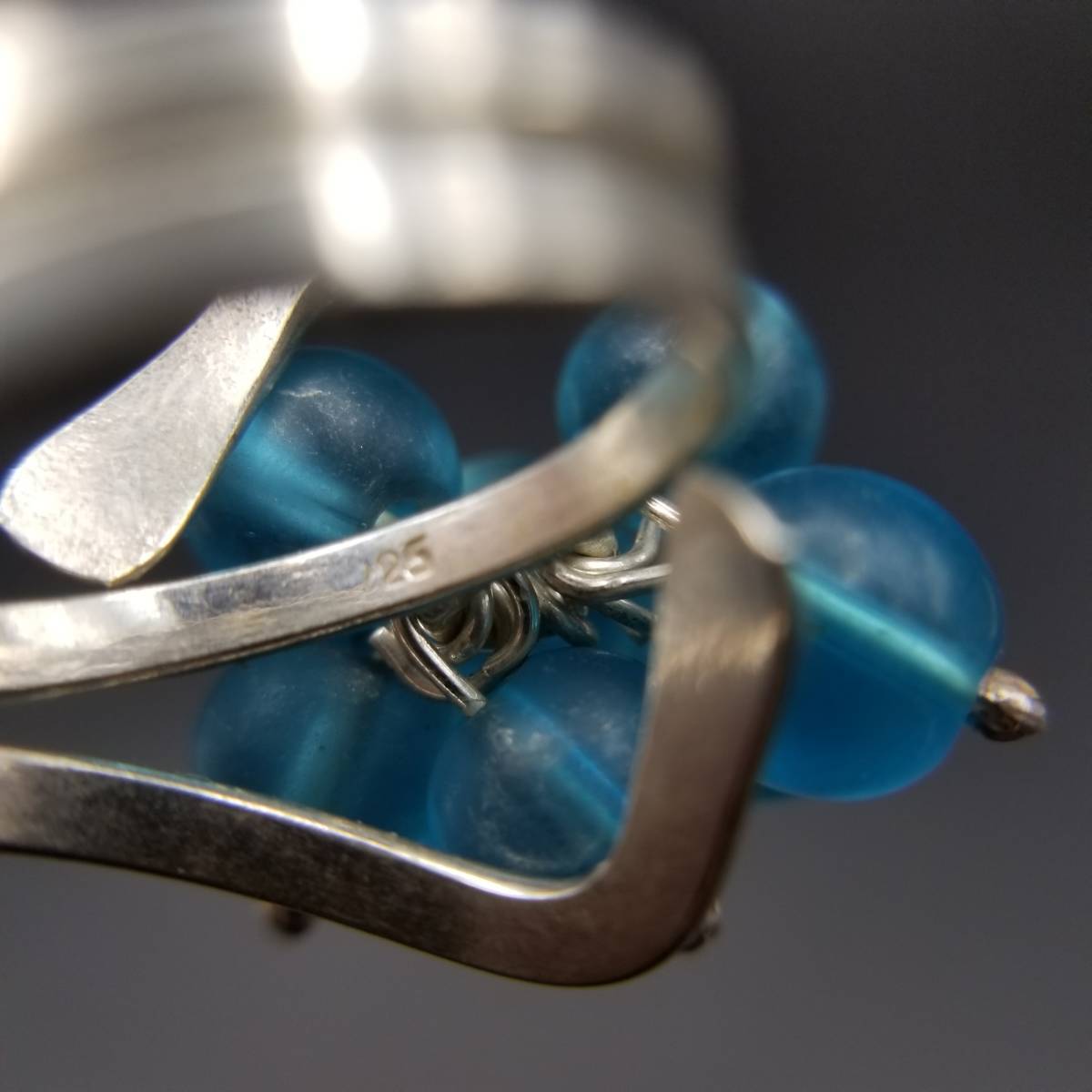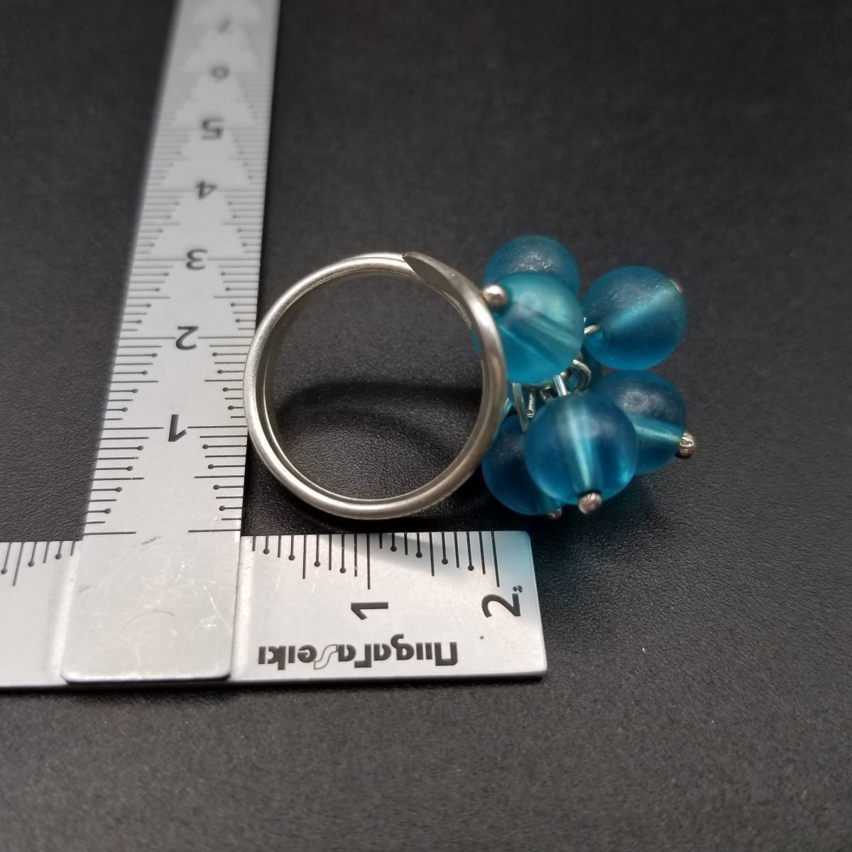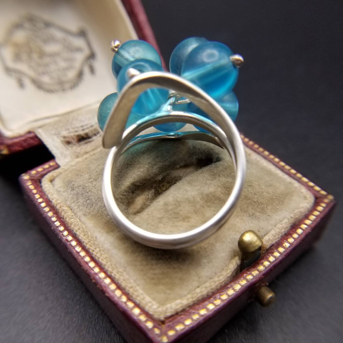 ライトブルー ボール ビーズ クラスター ひねり 925 ビンテージ シルバー リング 指輪 昭和レトロ アクセサリー ジュエリー 輸入 Y8-E