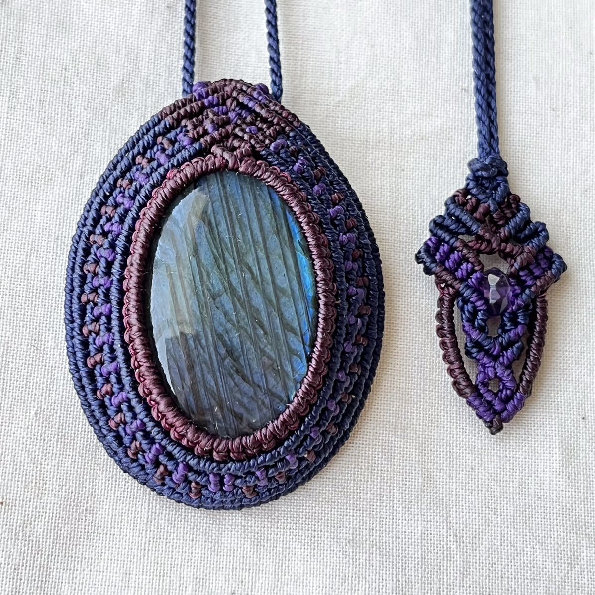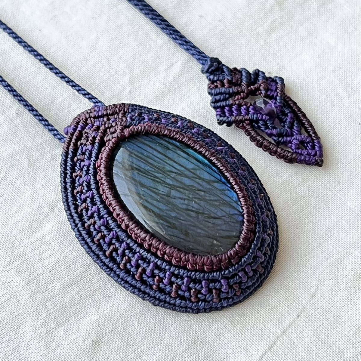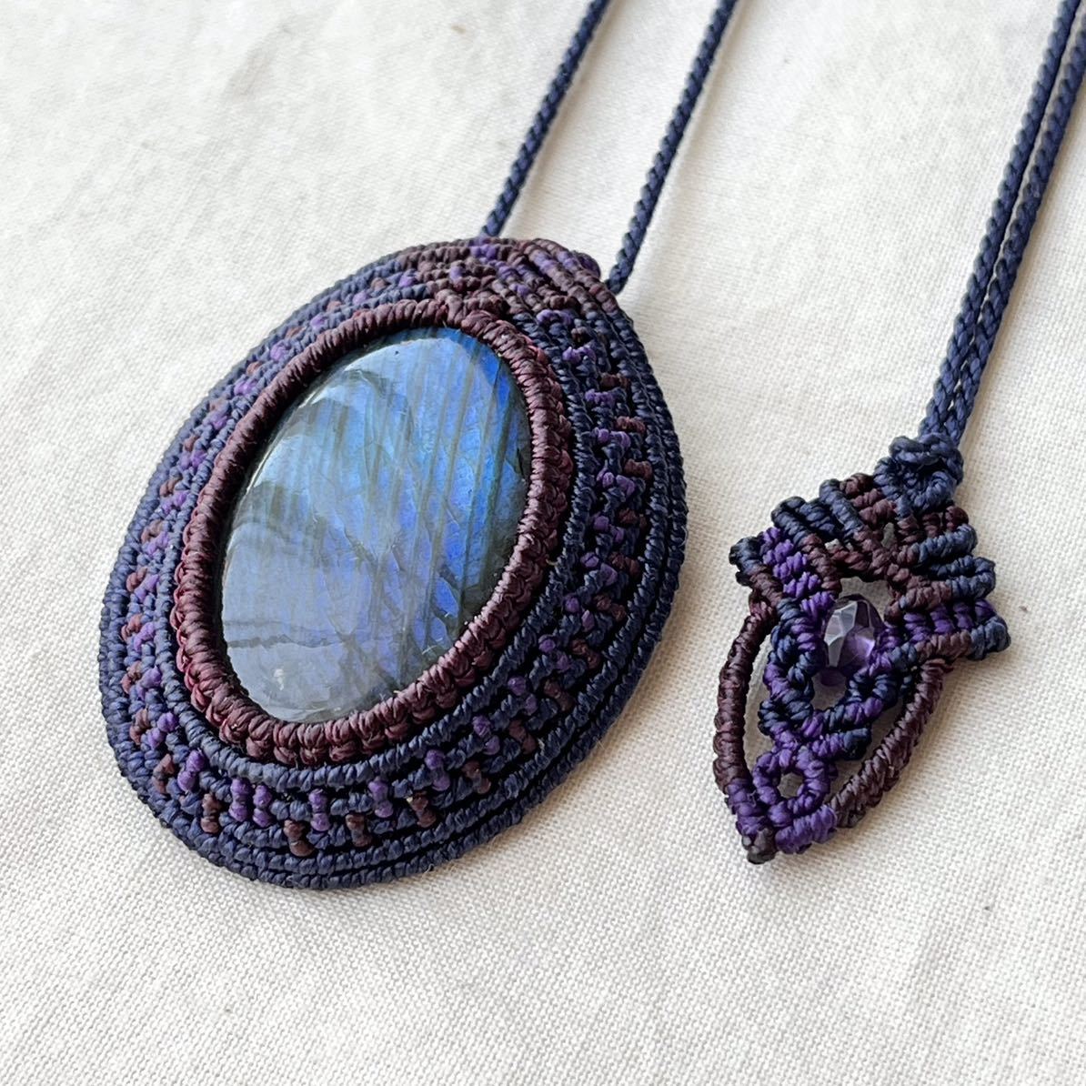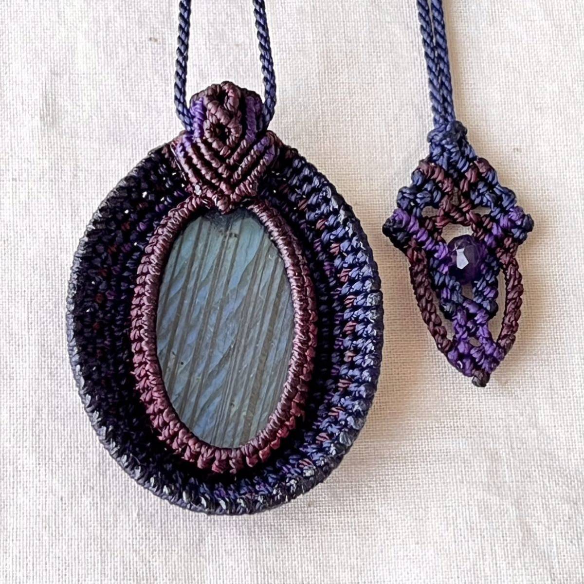 マクラメは糸を固く結びながら装飾を施す技法です。糸端は焼き留めで仕上げております。その為ニットやオーガンジーなどのザックリした生地に引っかかる場合があります。