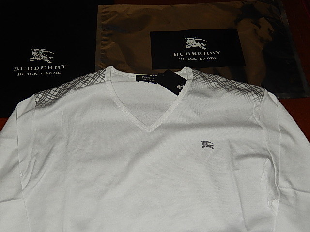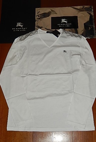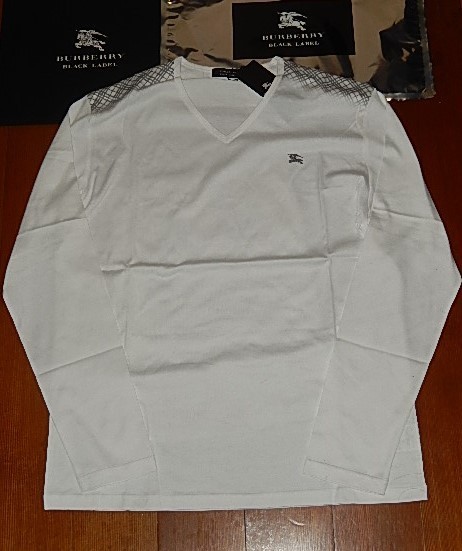 新品 タグ バーバリーブラックレーベル バーバリー 肩 タータン チェック 加工 カットソー ノバチェック 日本製 長袖Tシャツ 白色 三陽商会