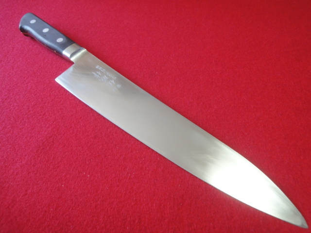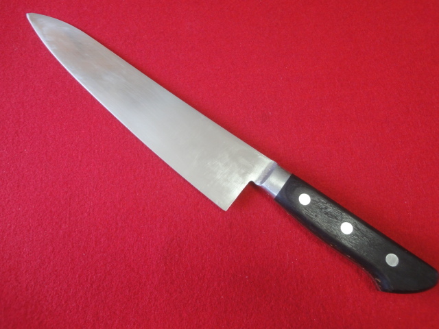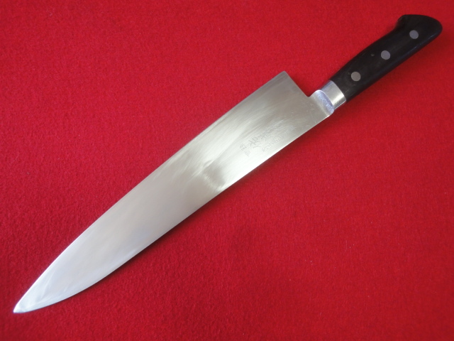 【佑成】牛刀 ※モリブデン特殊鋼 刃渡26.6㎝ 全長40.3㎝ 峰厚2.5mm ※両刃 中古品 全国一律送料1100円