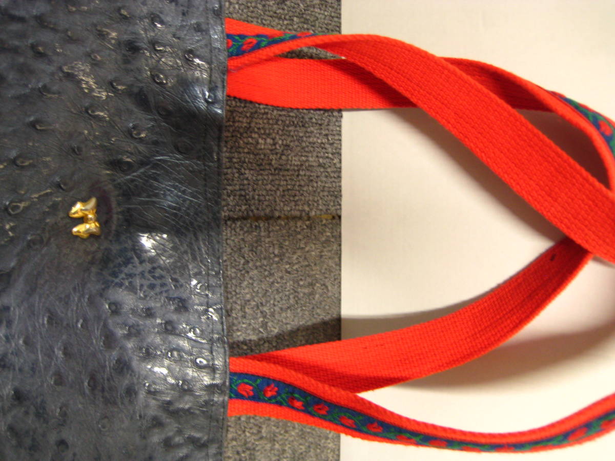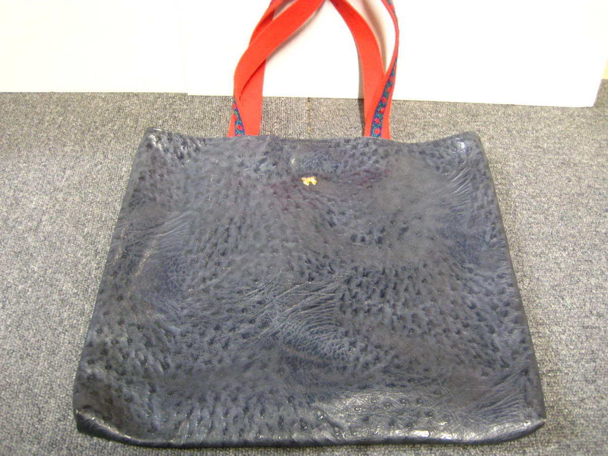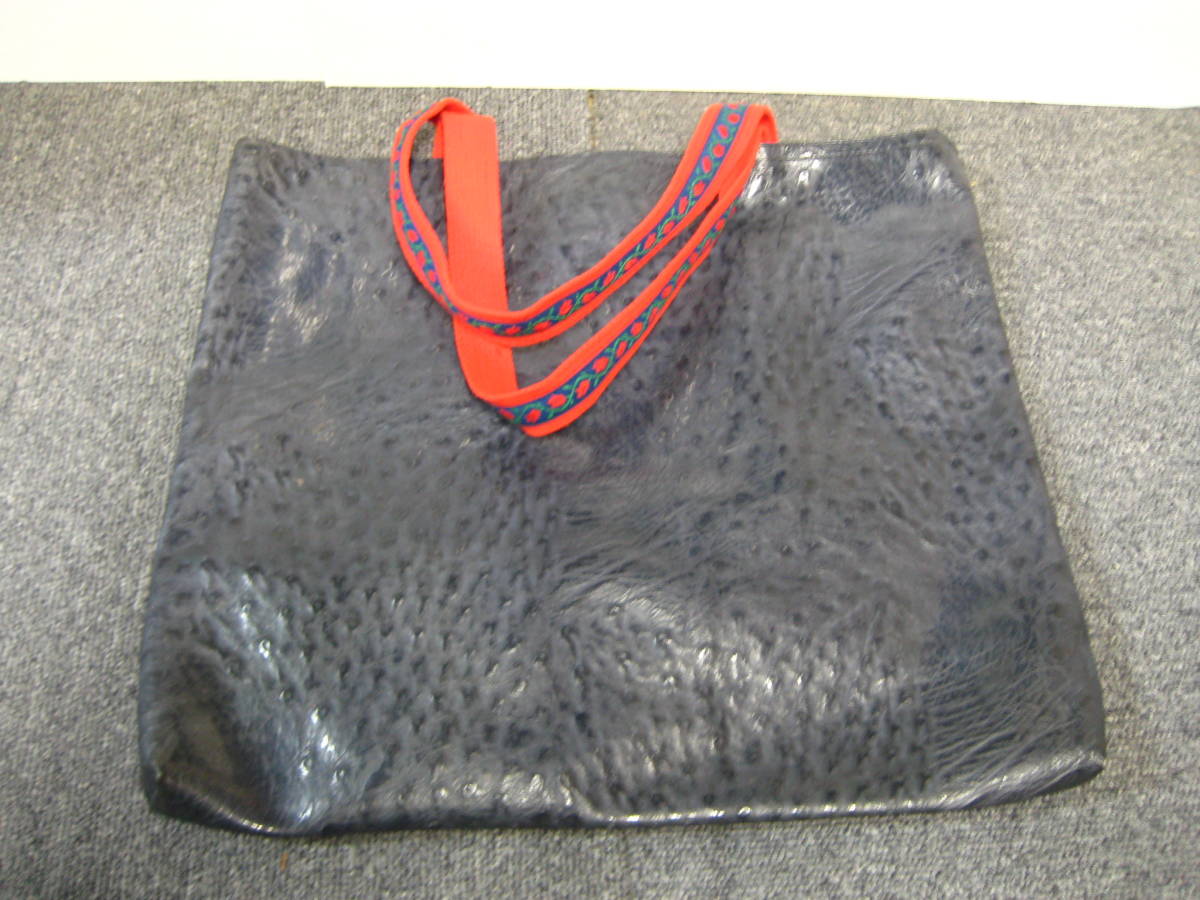*トートバッグ*オーストリッチ柄*本革?合皮?*紺系*レトロ調*中古品につきジャンク出品*A