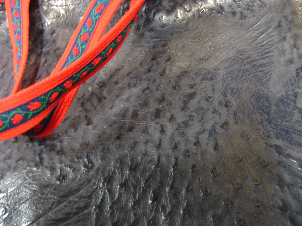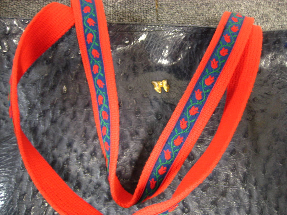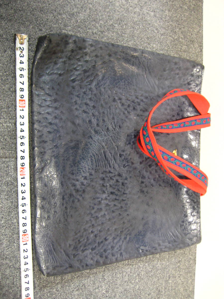 *トートバッグ*オーストリッチ柄*本革?合皮?*紺系*レトロ調*中古品につきジャンク出品*A