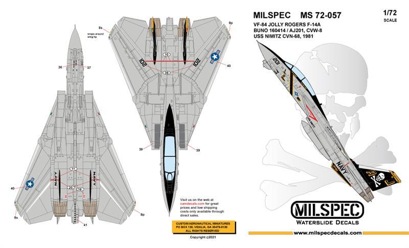 ミルスペック デカール ” MS 72-057,  VF-84, F-14A, JOLLY ROGERS, 1981 "の新品になります。