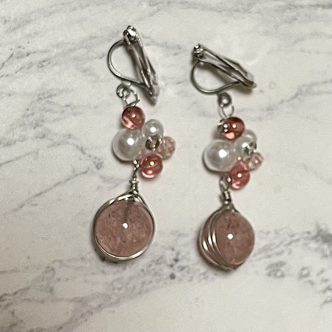 天然石とコットンパール、チェコビーズを使用したハンドメイドイヤリングです。