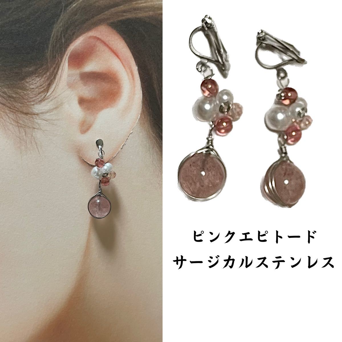 天然石はピンクエピトード 丸玉10㎜を使用。
