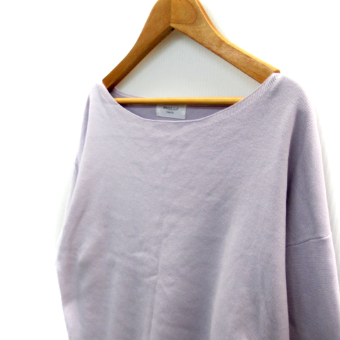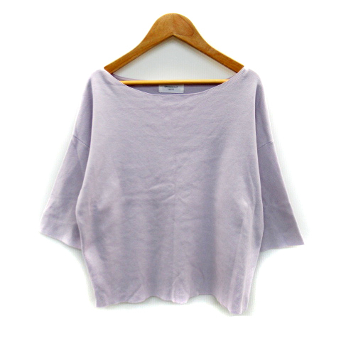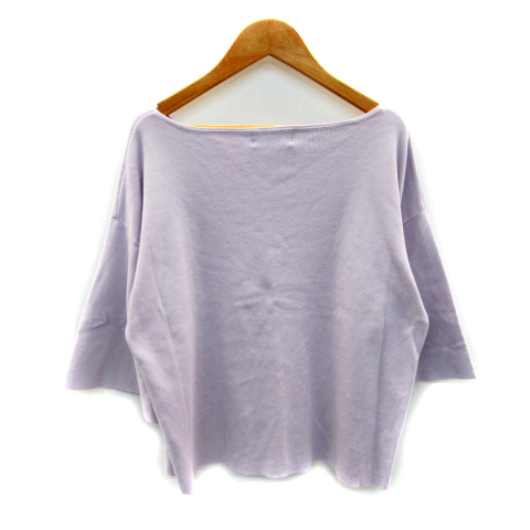 オペークドットクリップ OPAQUE.CLIP ニット カットソー 七分袖 ボートネック 無地 オーバーサイズ M 薄紫 パープル /SY26 レディース