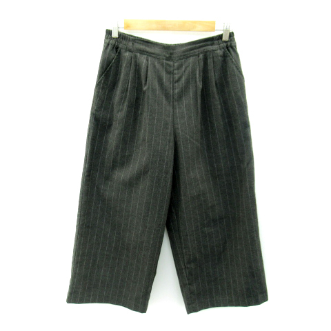 グローブ grove ワイドパンツ アンクル丈 ストライプ柄 L グレー 白 ホワイト /SY5 レディース