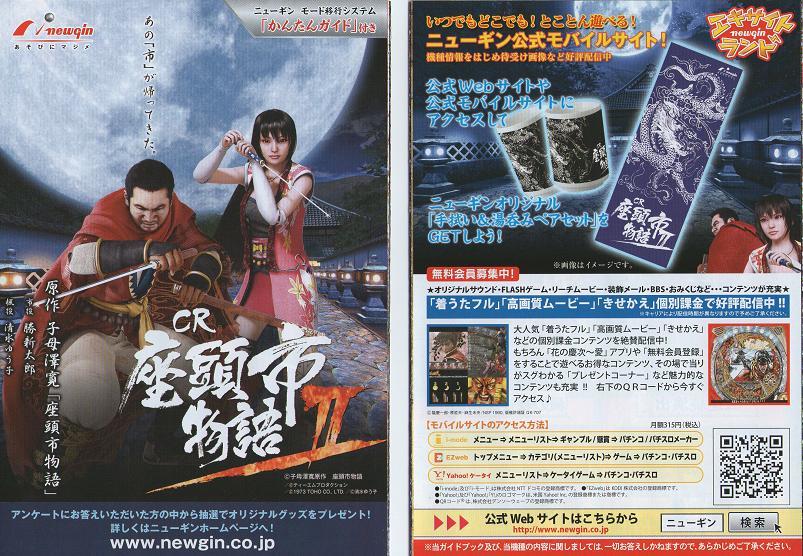 ニューギン(newgin)の2011年導入のパチンコ台「CR座頭市物語Ⅱ」の無料配布小冊子です。