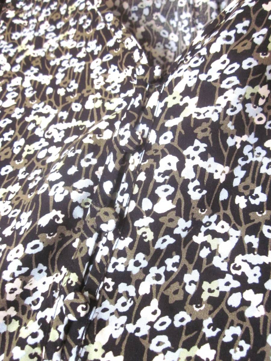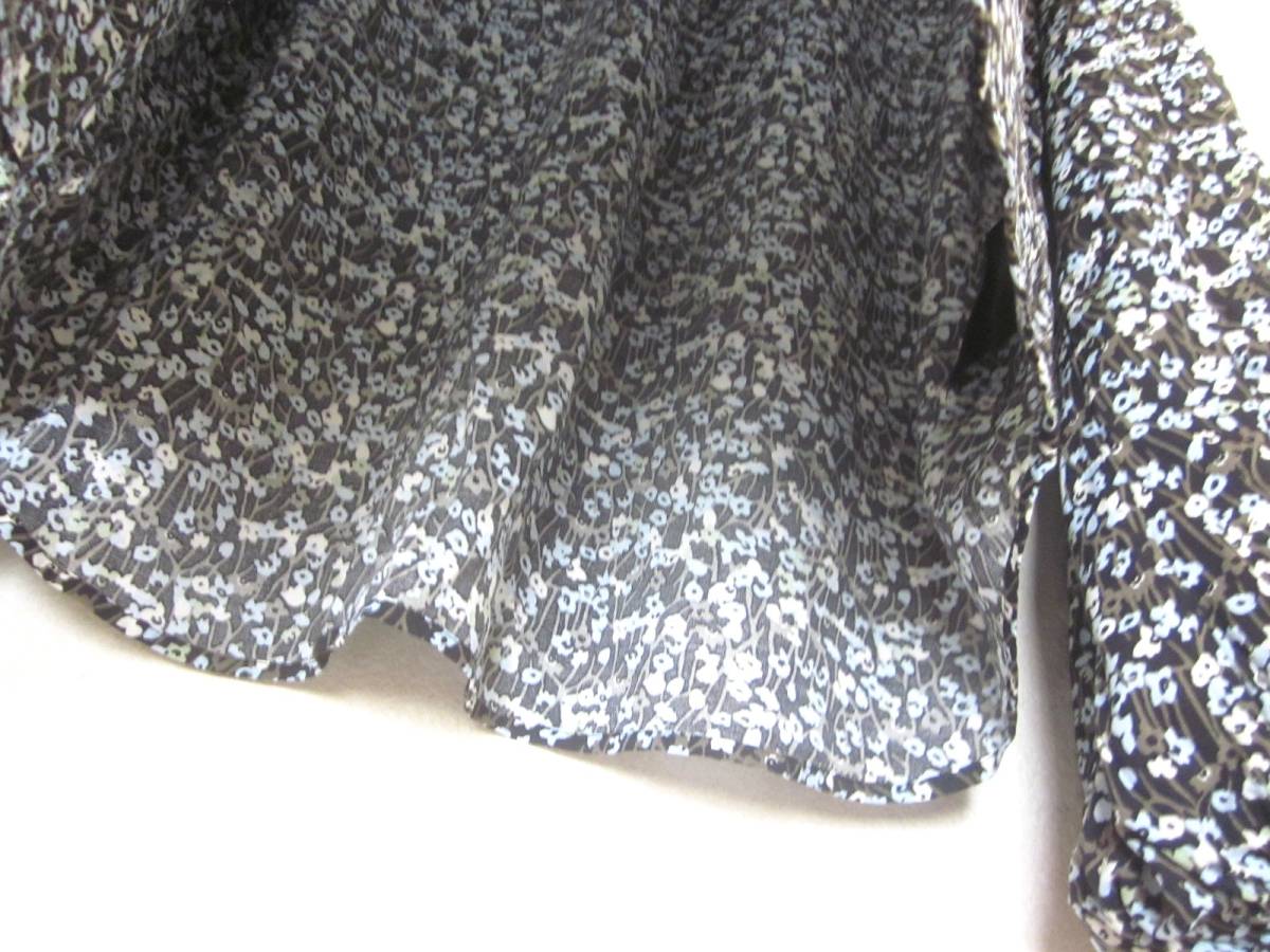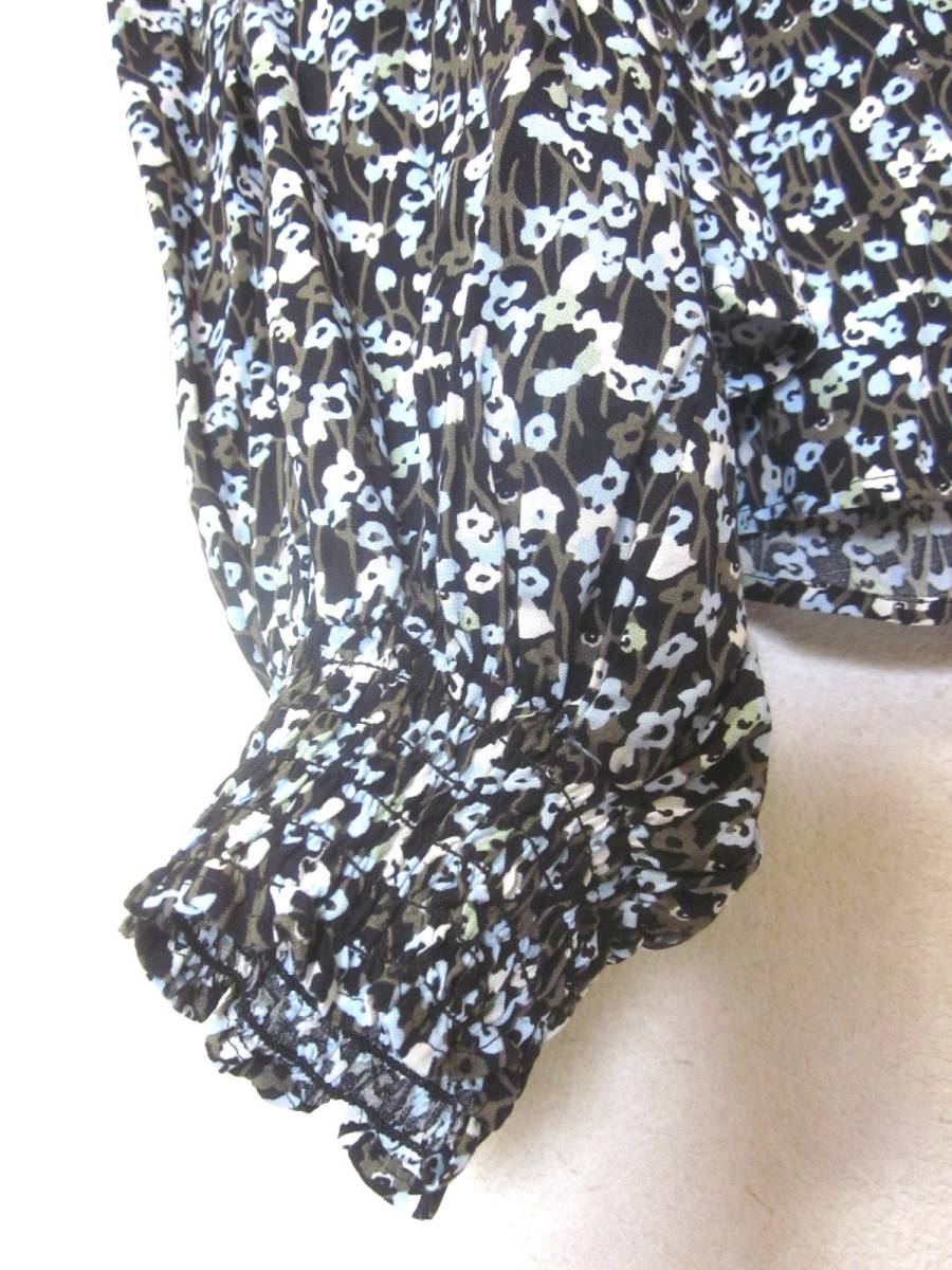 ユニクロ レーヨンブラウス ボリューム袖 長袖 シャツ プリント Vネック ブラウス レディースL 総柄 シャーリング ギャザー 6248