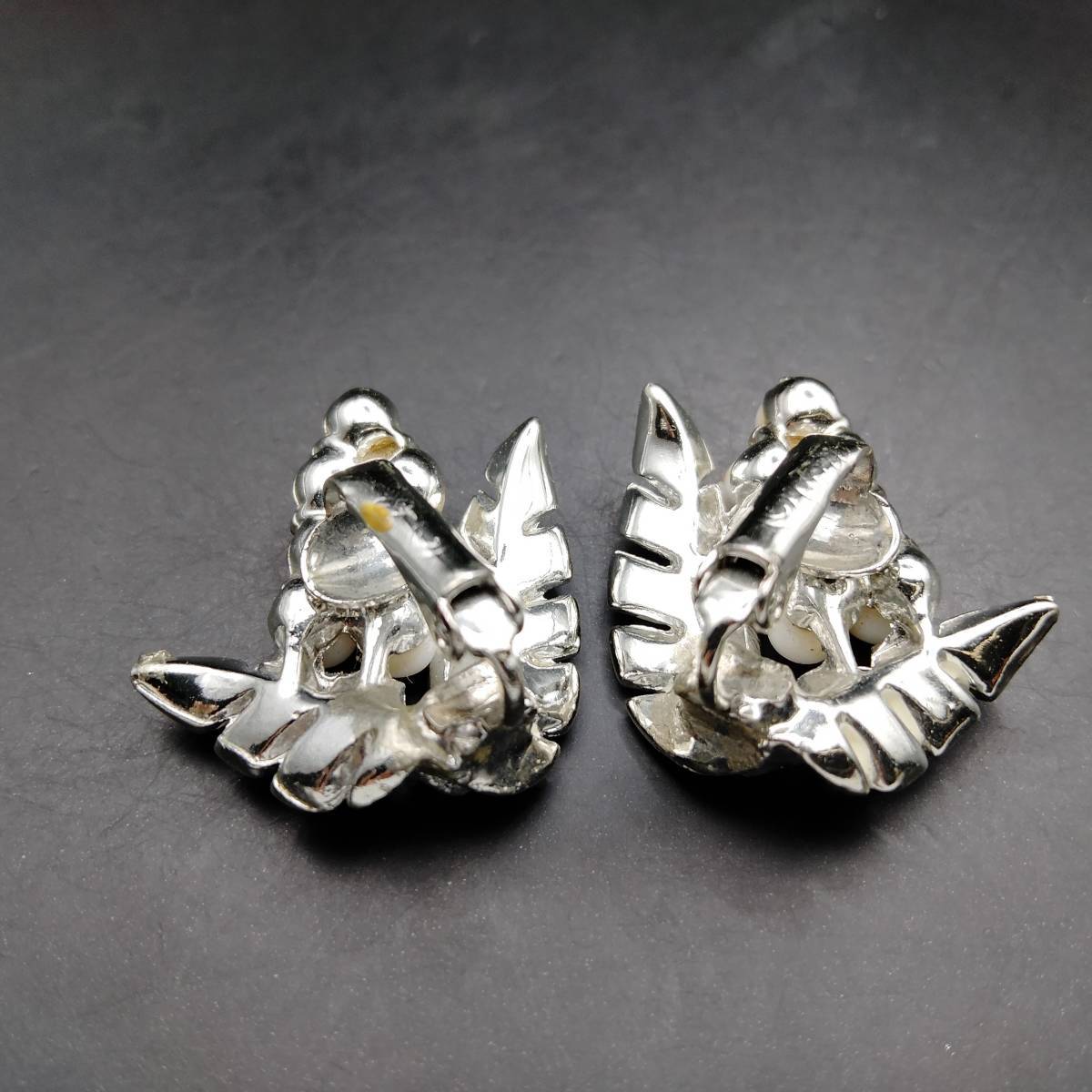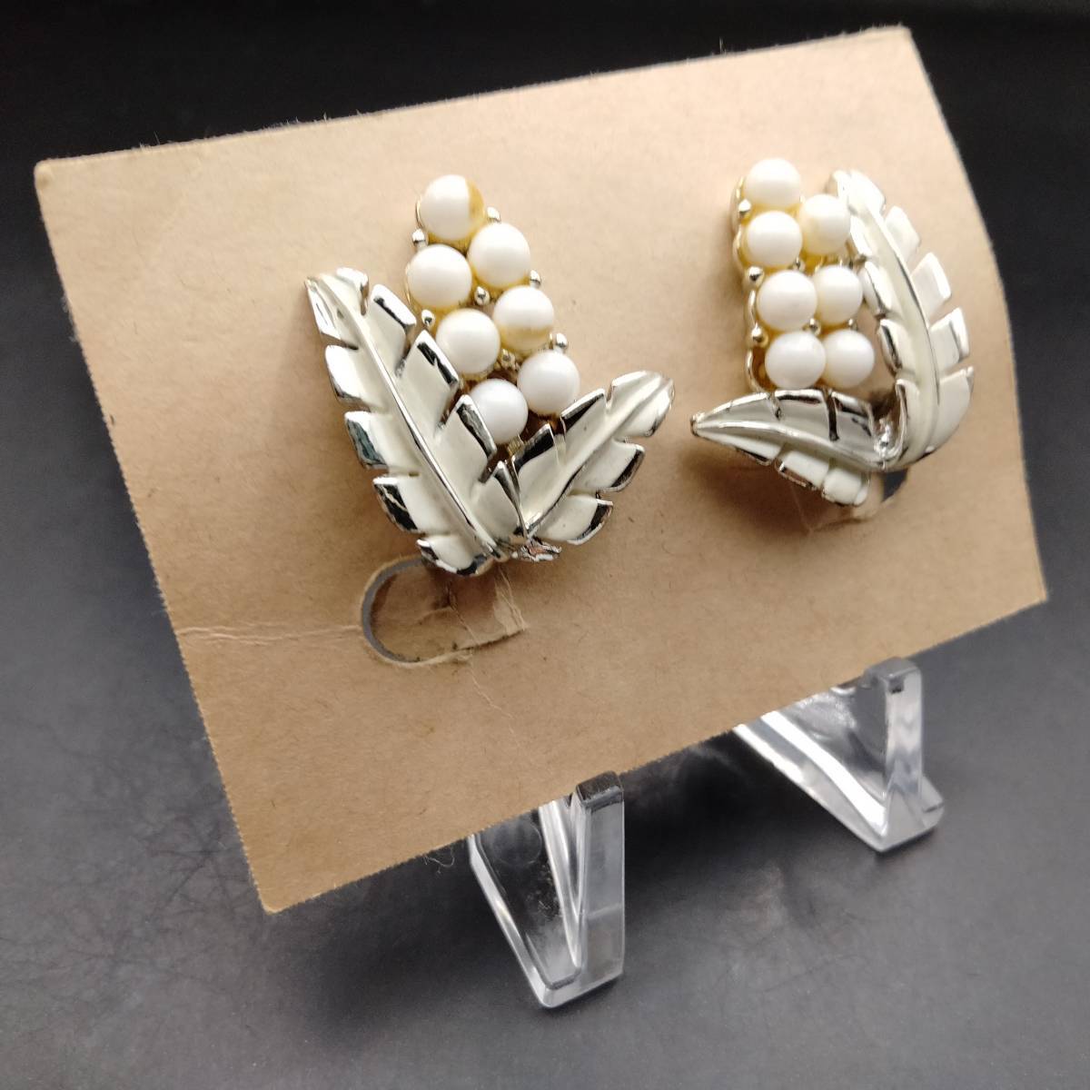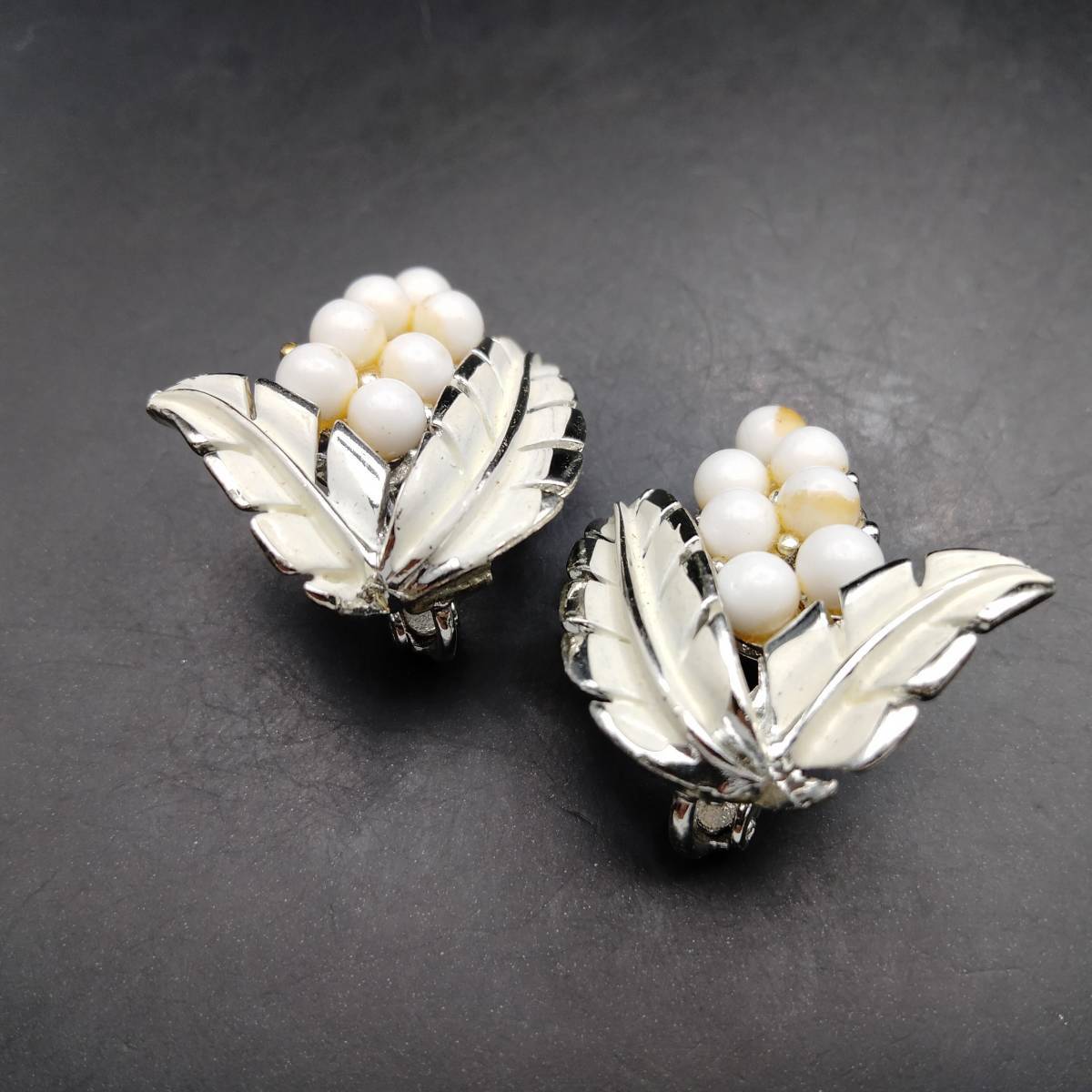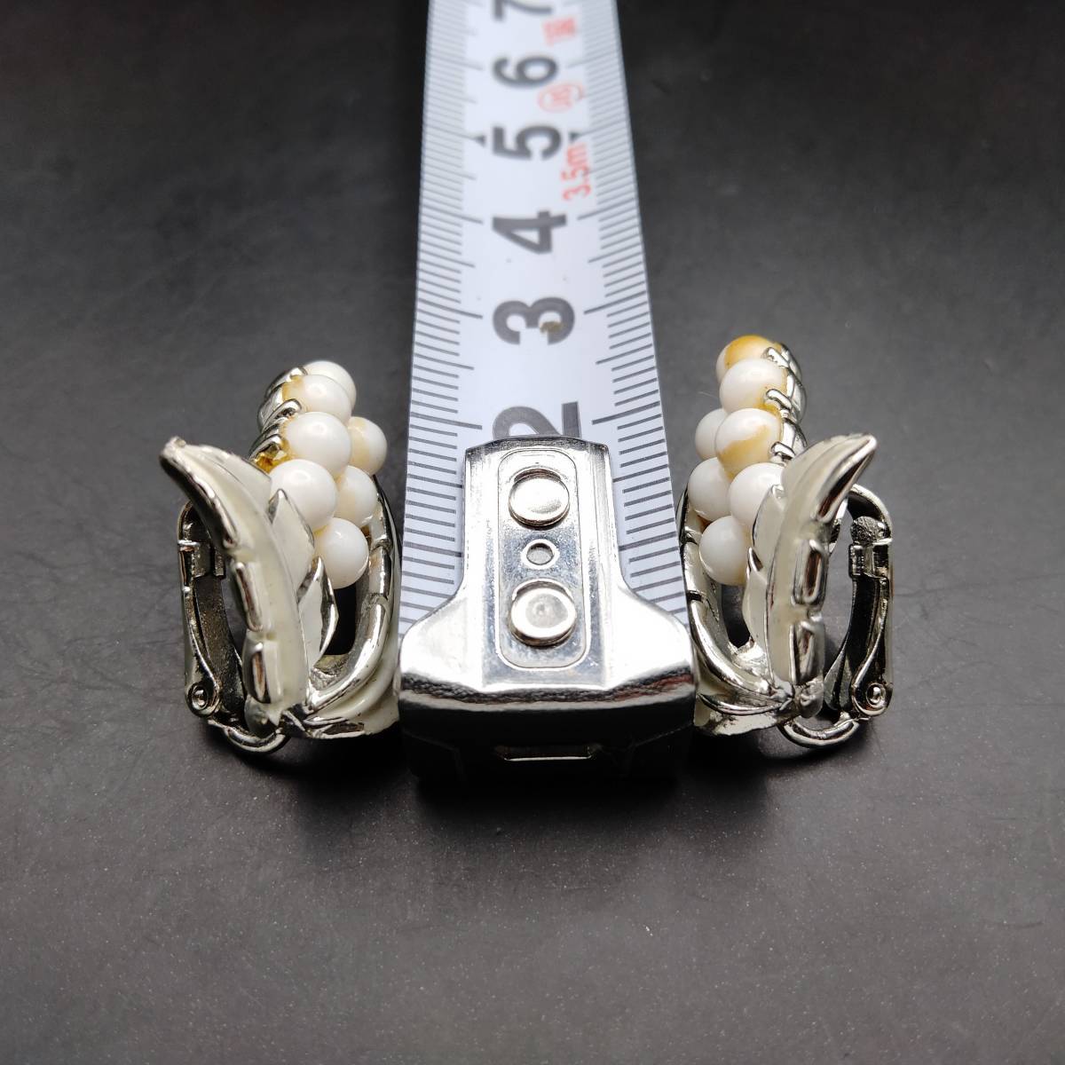 フラワー モチーフ ホワイト ボール ビーズ シルバートーン ビンテージ ピアス イヤリング 昭和レトロ アクセサリー ジュエリー 輸入 8S-P