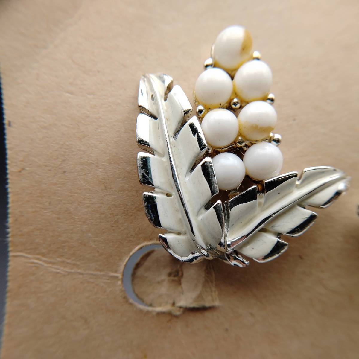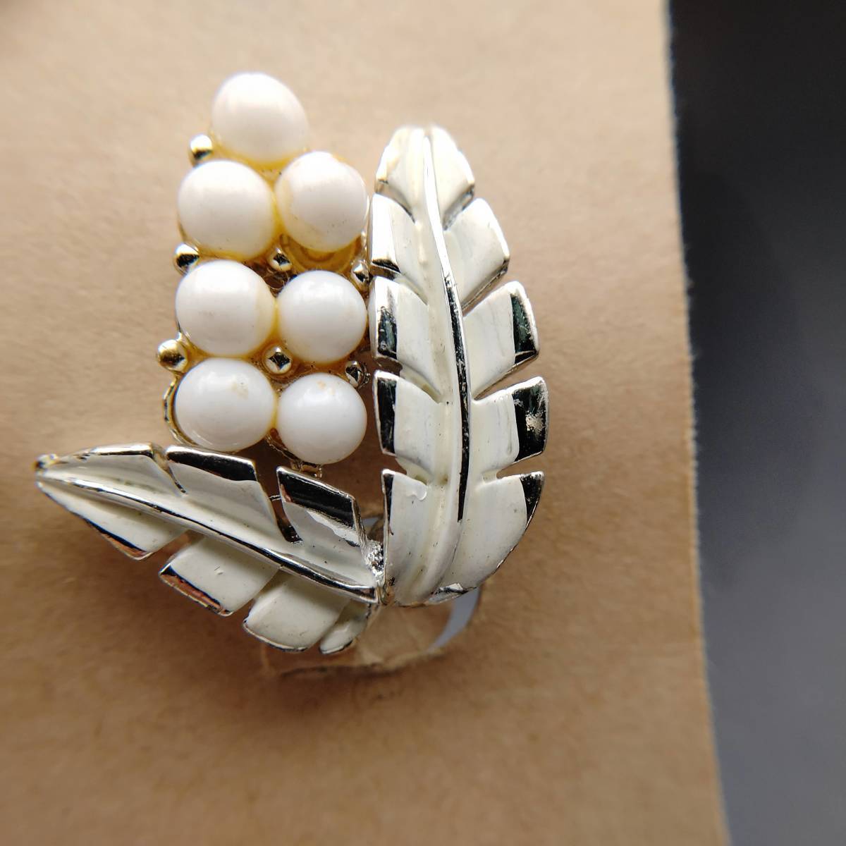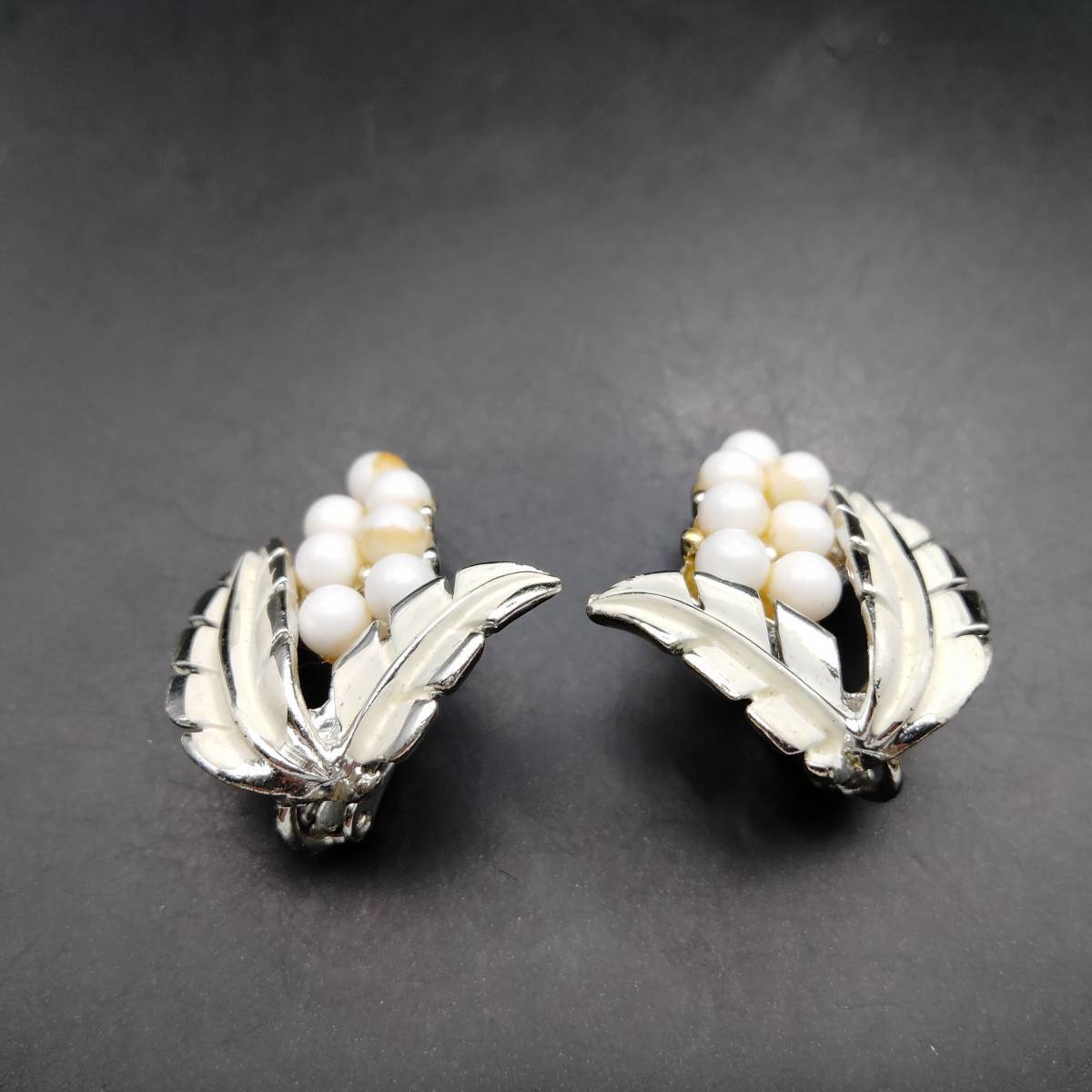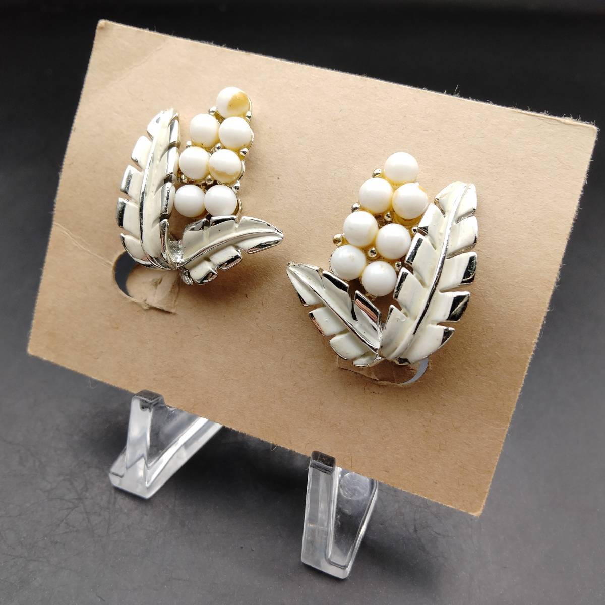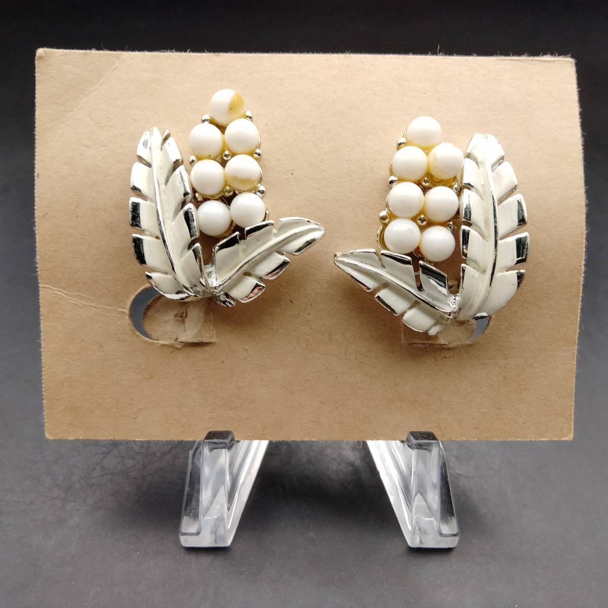 フラワー モチーフ ホワイト ボール ビーズ シルバートーン ビンテージ ピアス イヤリング 昭和レトロ アクセサリー ジュエリー 輸入 8S-P