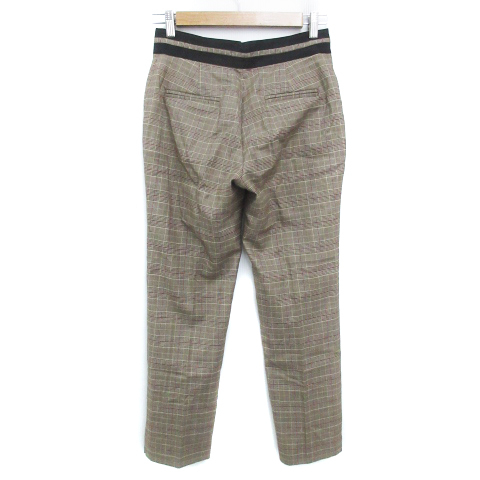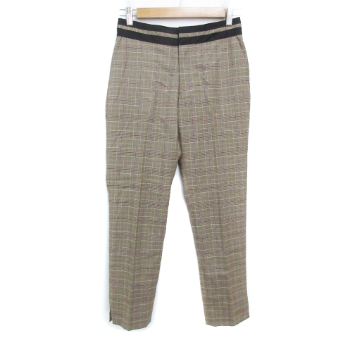 ミラオーウェン スラックスパンツ テーパードパンツ ロング丈 グレンチェック柄 マルチカラー ウール混 0 ベージュ 黒 ブラック レディース