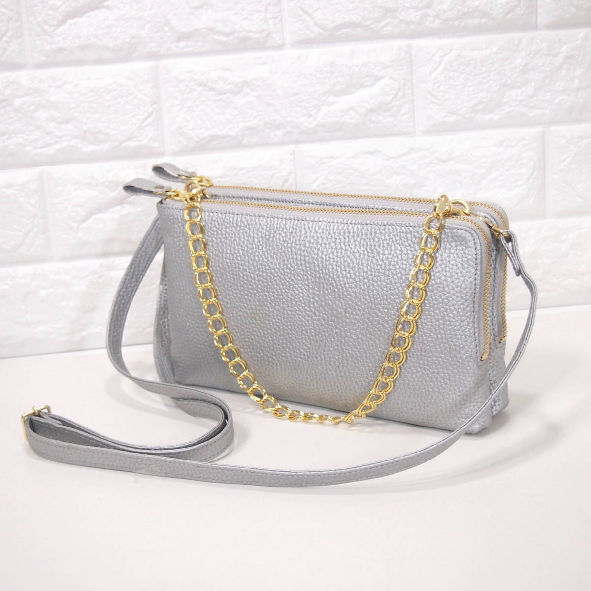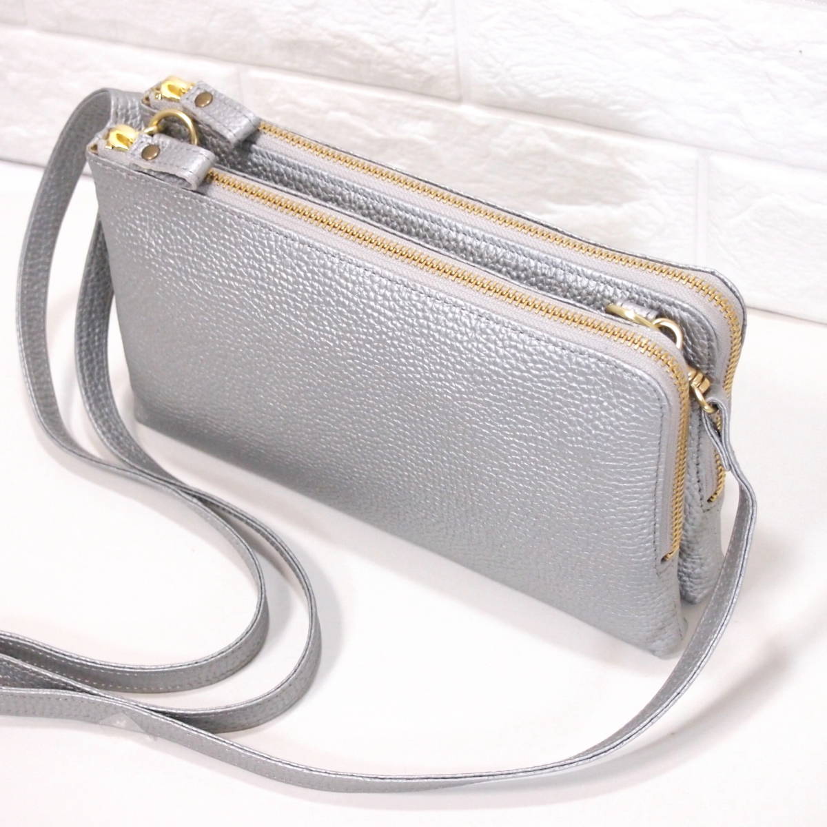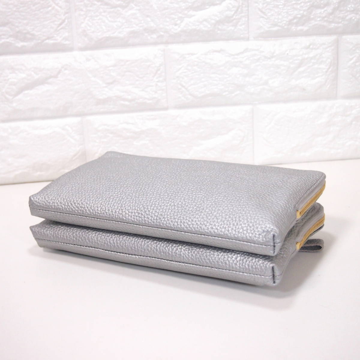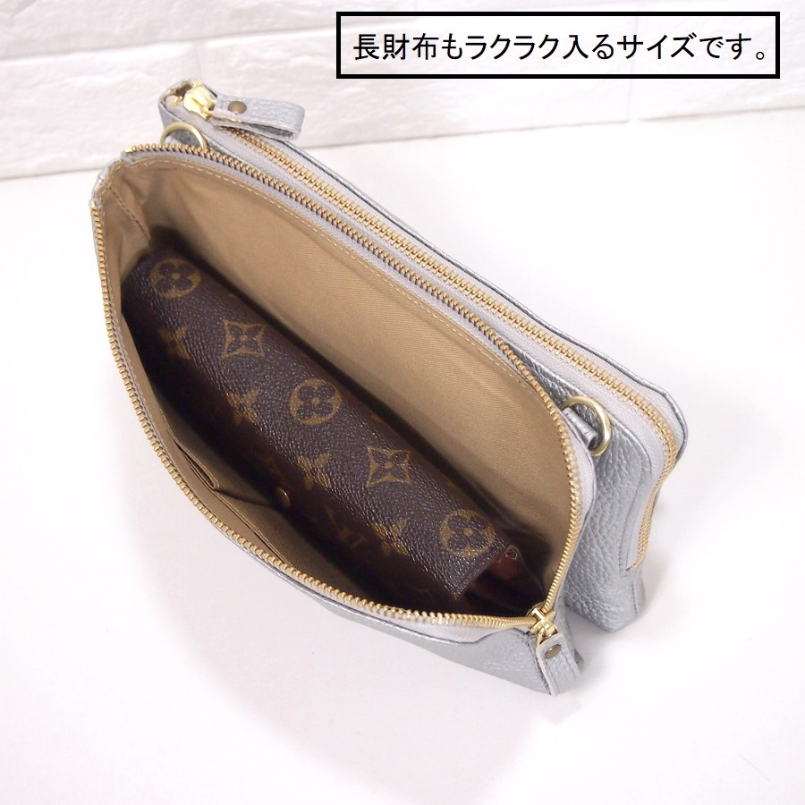 ★新品★ハンドメイド★日本製★本革★お財布ポシェット★ダブルファスナー★斜め掛けショルダーバッグ★シルバー色★ゴールドチェーン★