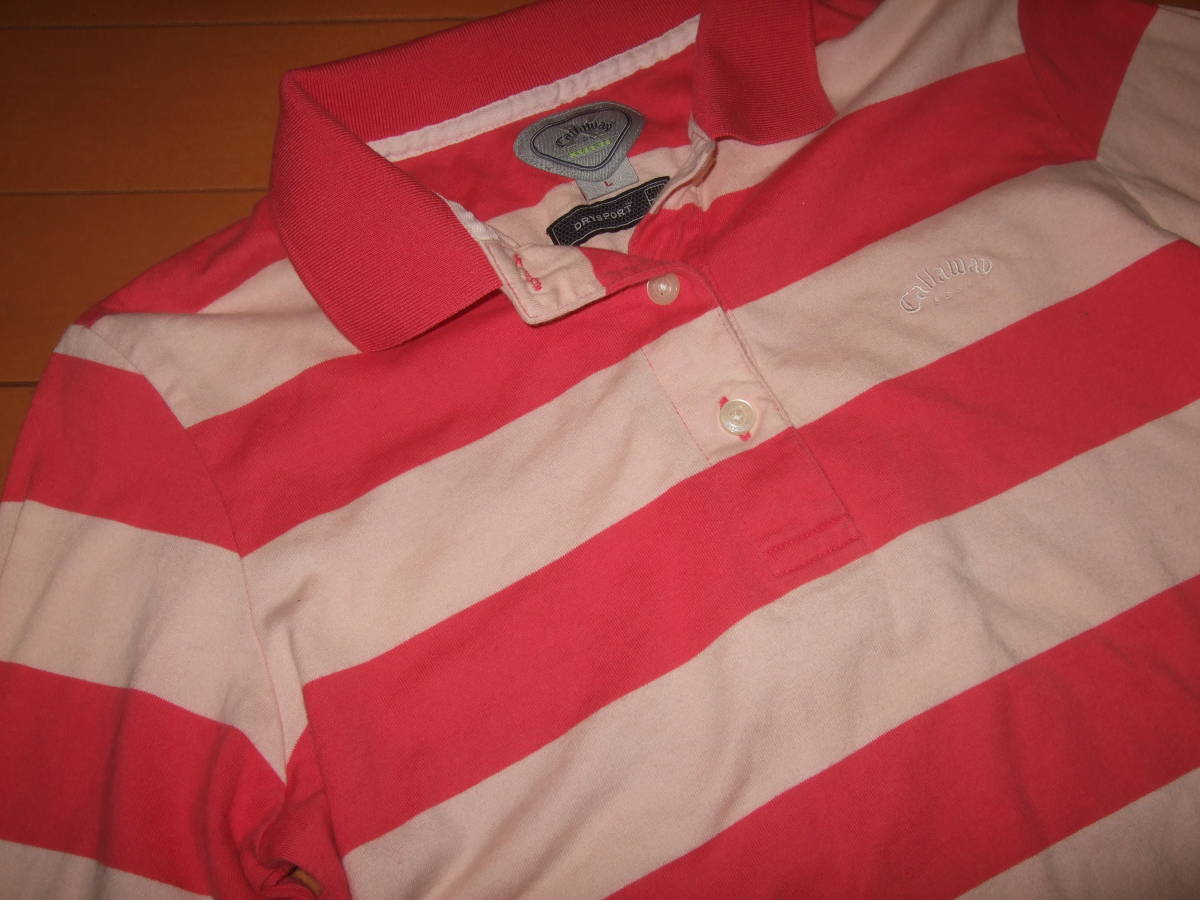 使用状況:ユーズドですので、着用感や表面の毛羽立ちは多少あります。ゴルフのプレイや普段着には十分お使い頂ける範囲です。ピンクのボーダーでとってもかわいらしいです。是非ご検討ください。