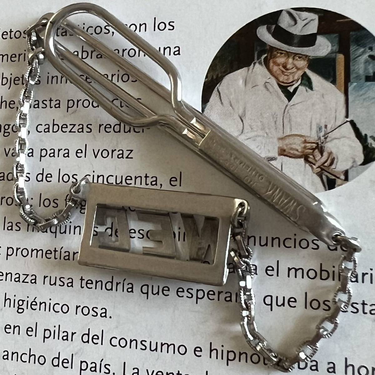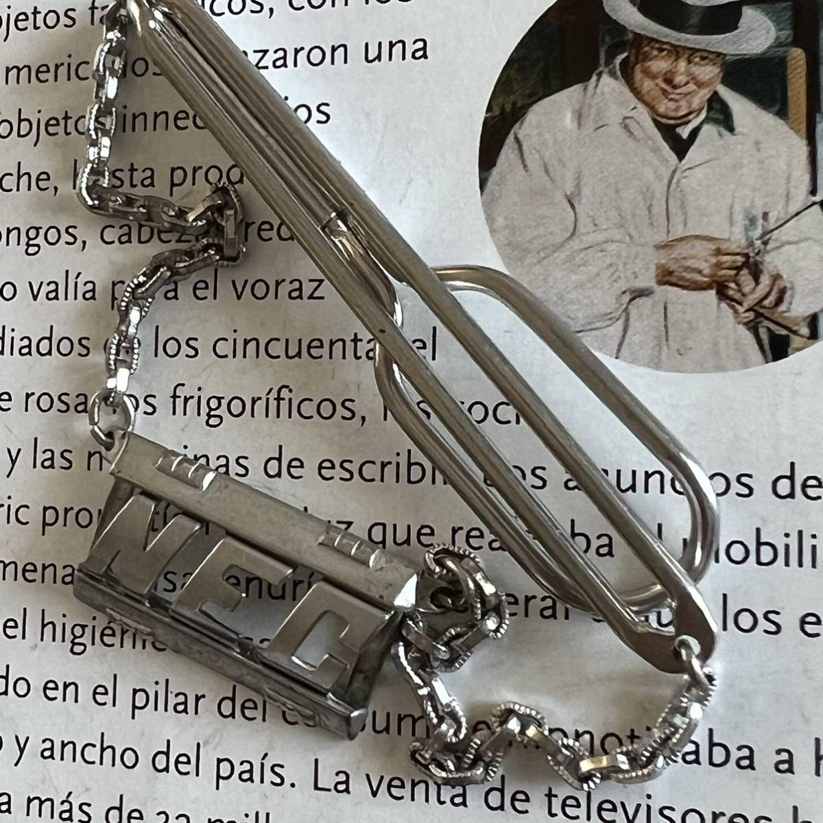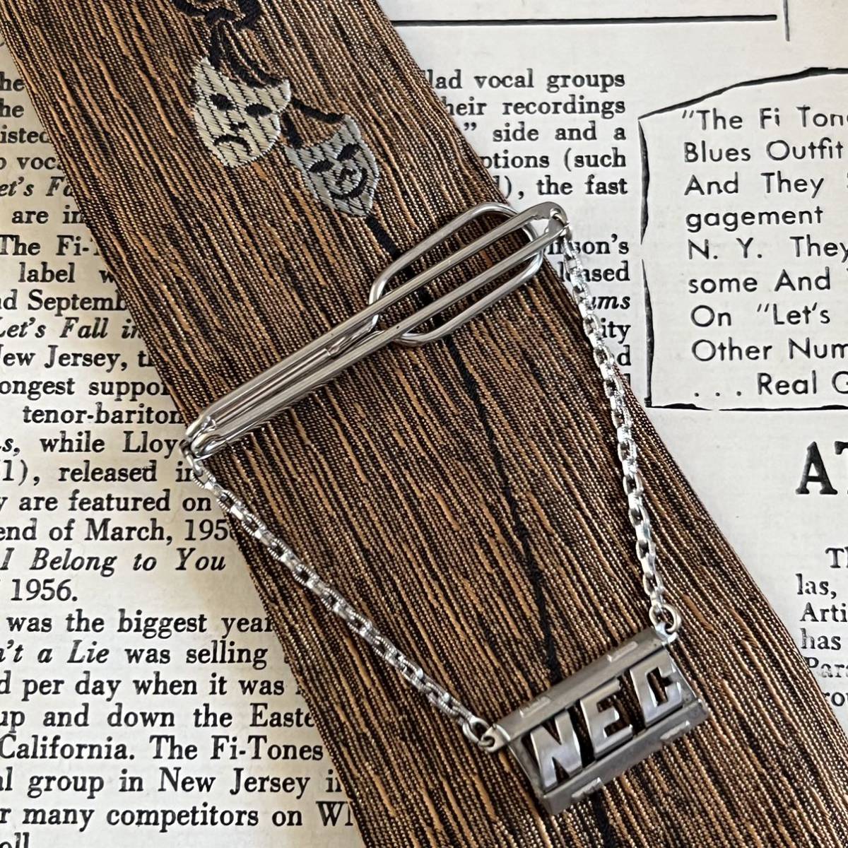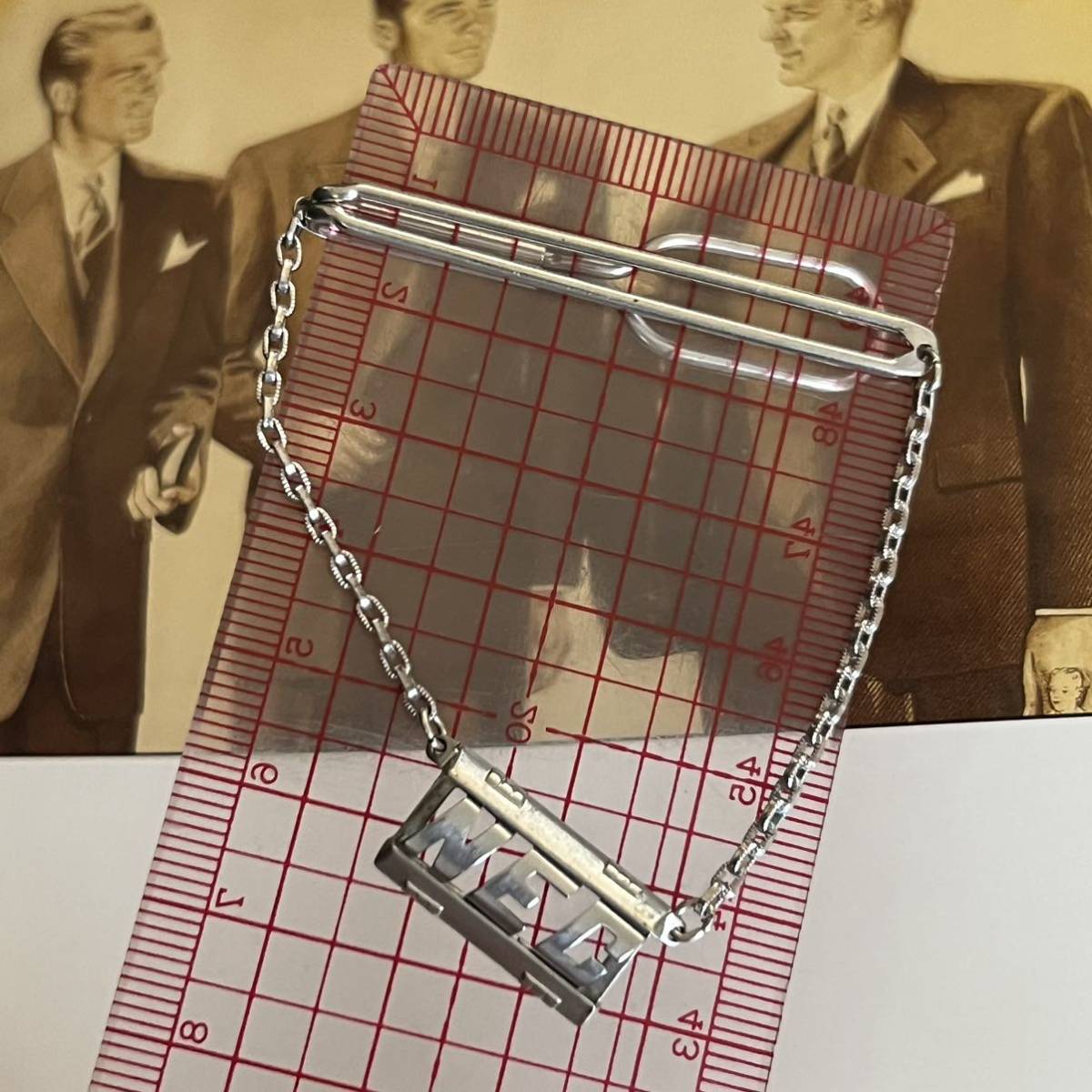 ビンテージ アルファベットモチーフのチェーン付きネクタイピンです