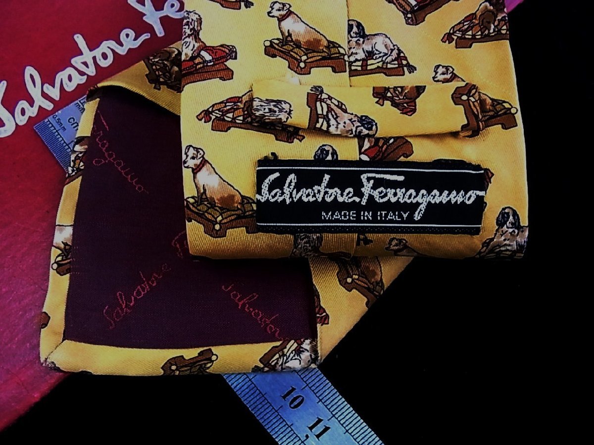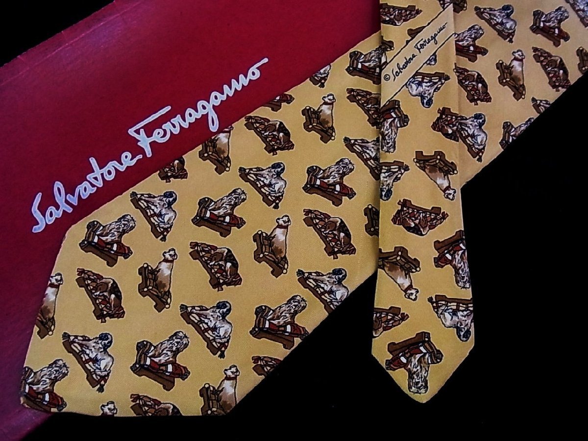 ♪今週の特売980円~♪1194♪状態並品【Ferragamo】フェラガモ【犬 いぬ 動物 柄】ネクタイ♪