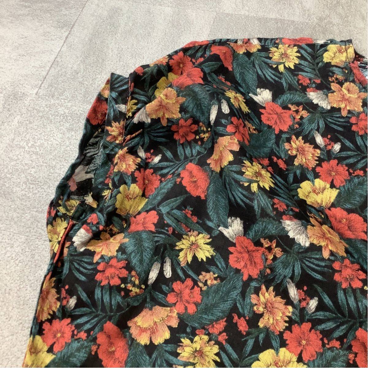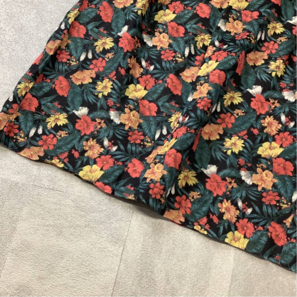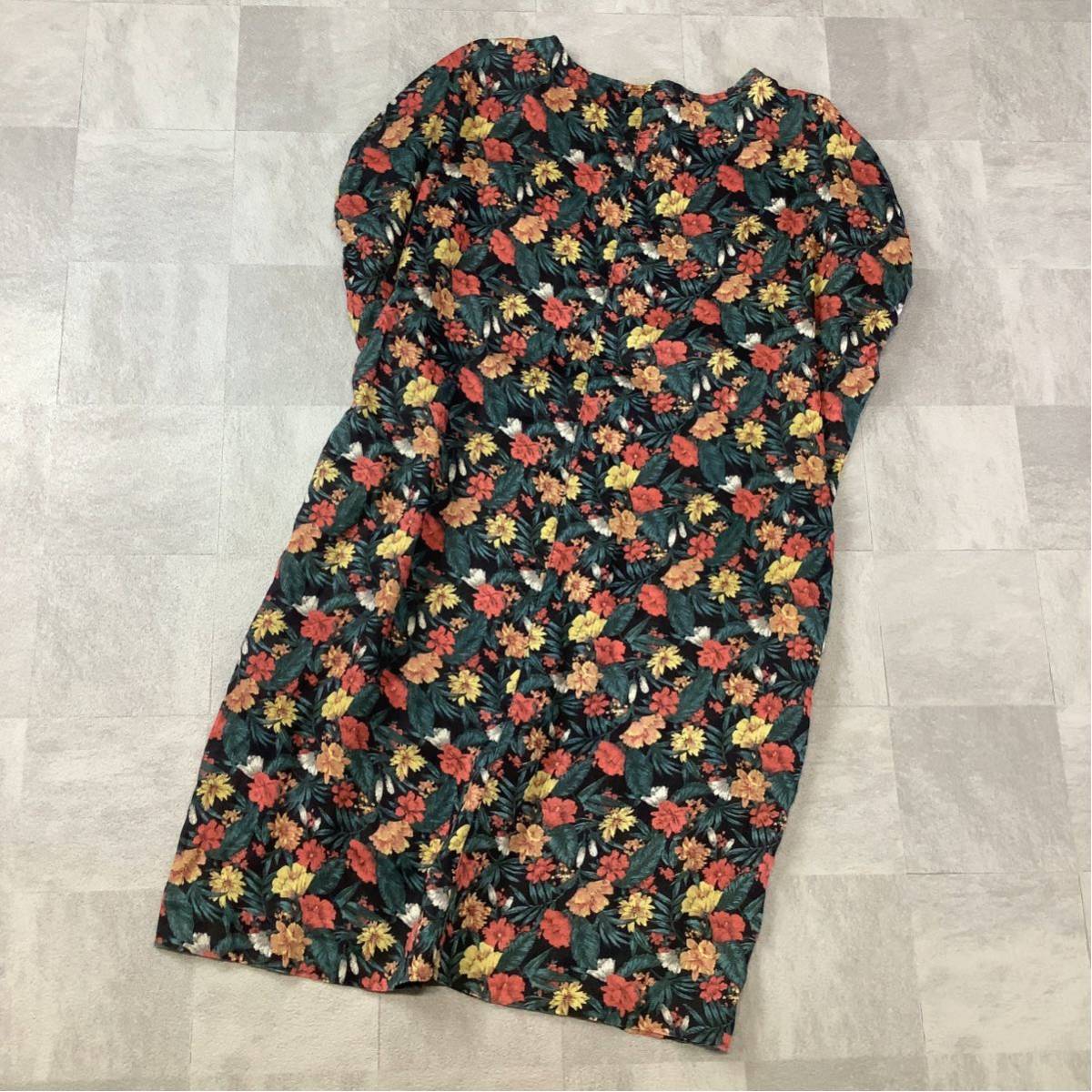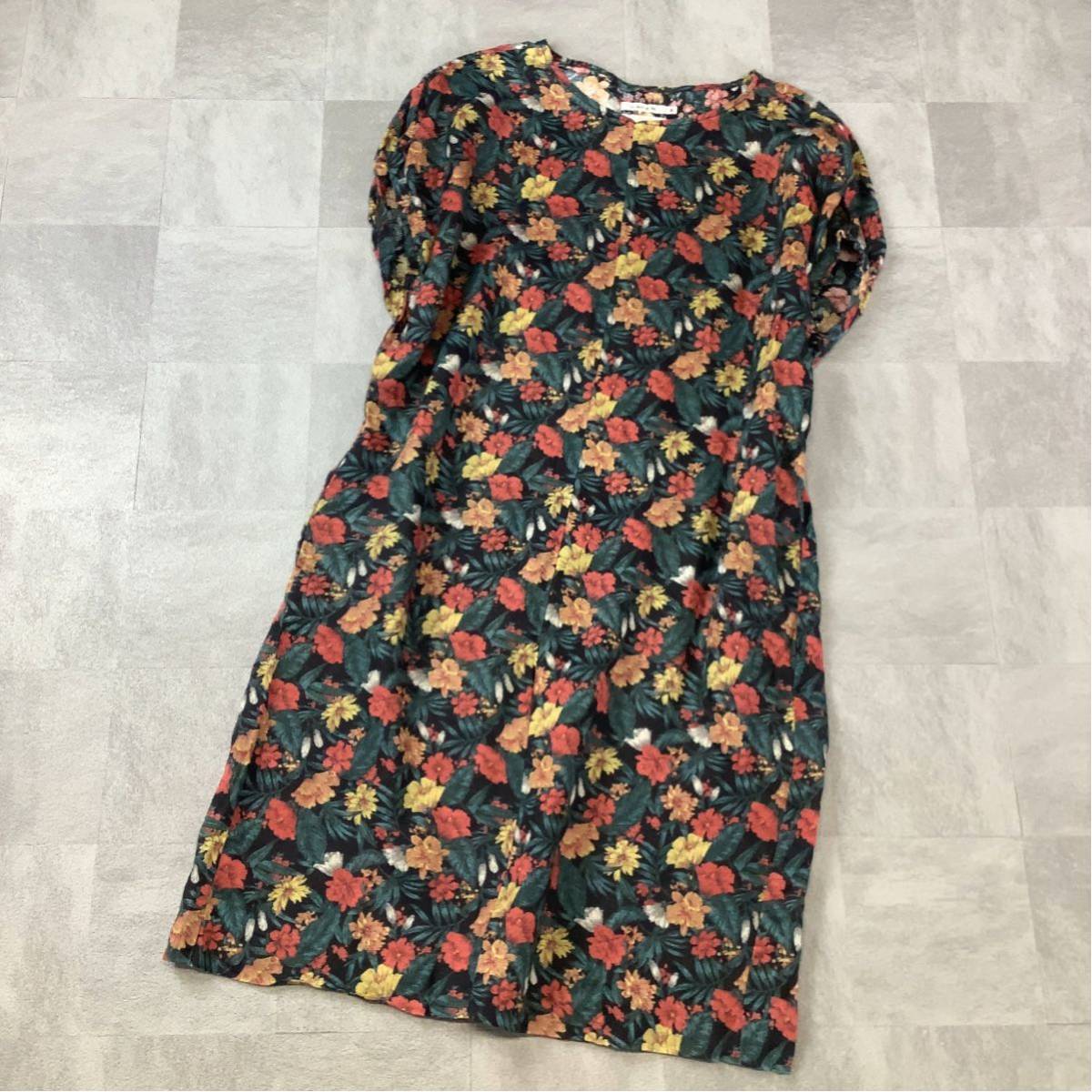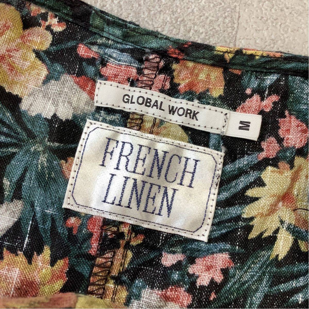 【高級フレンチリネン100%】美品 GLOBAL WOR K グローバルワーク 総柄 花柄 リネン ロングワンピース レディース Mサイズ ブラック系 麻