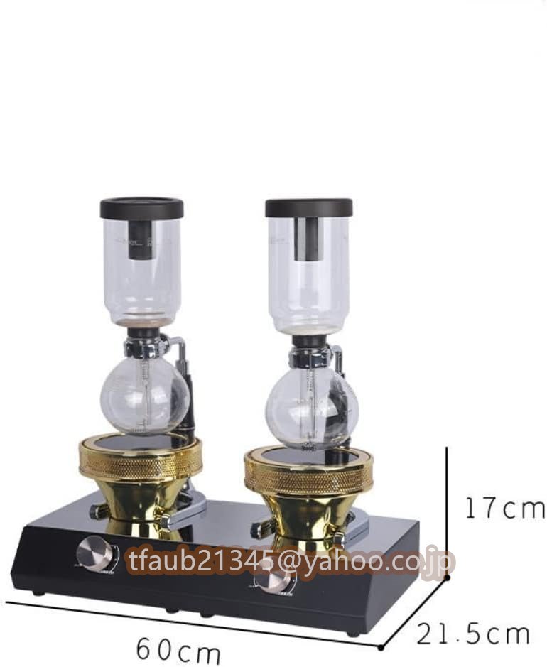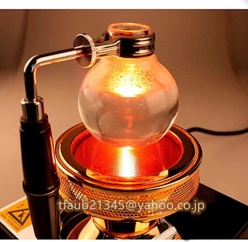 使用法: 1.サイフォンポットの下側の座席にお湯を入れ、上の側の座席に適量の挽いたコーヒーパウダーを入れます。 2.スイッチを入れ、MAXに回してお湯を沸騰させます。 3.お湯を沸かすと、下席から上席に自動的に流れ込みます。 このとき、コーヒーの調理時間は、個人の習慣に応じて決めることができます(通常、水がすべて上がってから約45~60秒後)。 次に、電源を切り、サイフォンポットを取り外して待ちます。淹れたてのコーヒーは自然に下の席に流れ込みます。 4.保温が必要な場合は、元の位置に戻し、スイッチを適切な温度に調整してください。 パラメーター: 定格電圧:110V 定格電力:400W 加熱プレートの直径:5.1インチ(130 mm) 重量:4.4ポンド(2 製品機能:サイフォンポット加熱 対象者:コーヒー愛好家 安全上の警告: 加熱すると、ガラスの表面が熱くなります。ランプソケットの底に直接手で触れないでください。