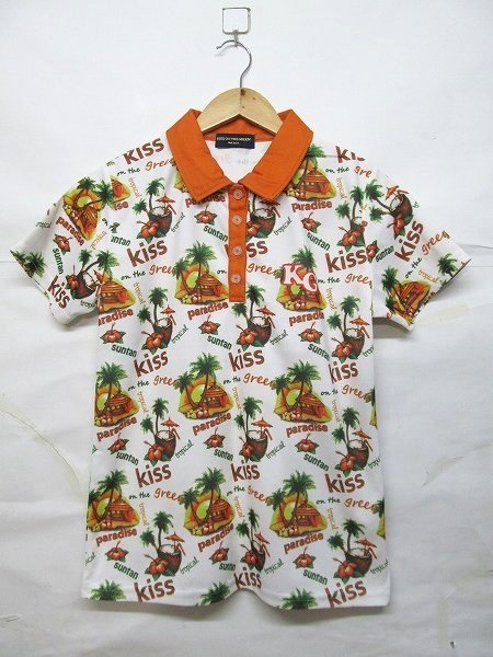 ■キス オン ザ グリーン kiss on tha green ゴルフウエア 総柄 ポロシャツ 半袖 レディースです。