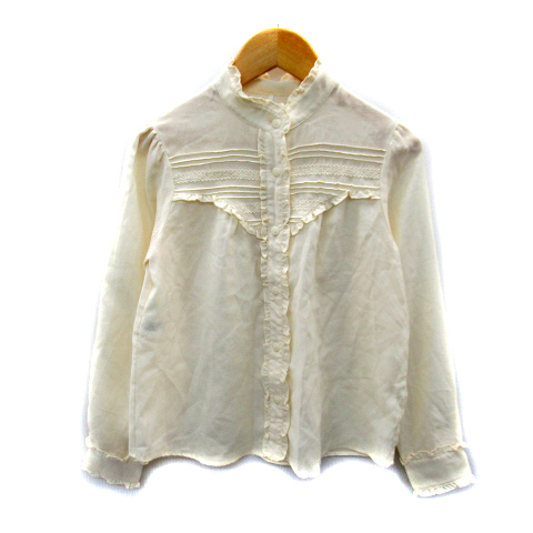 クミキョク 組曲 KUMIKYOKU ブラウス シャツ 長袖 バンドカラー 無地 レース ウール混 LL アイボリー /SY20 女の子 キッズ