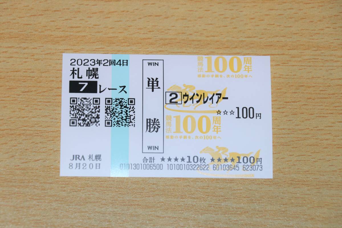 ウインレイアー 札幌7R (2023年8/20) 現地単勝馬券(札幌競馬場)です。気に入って頂けた方の落札を心よりお待ちしております。