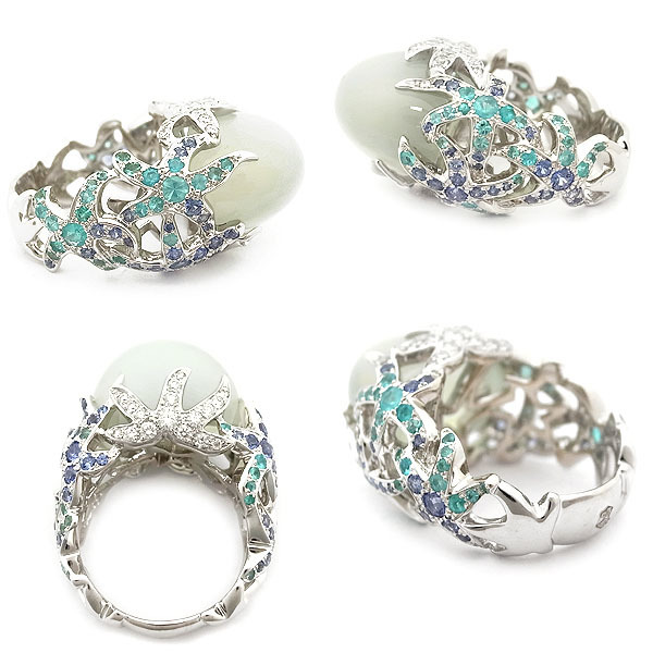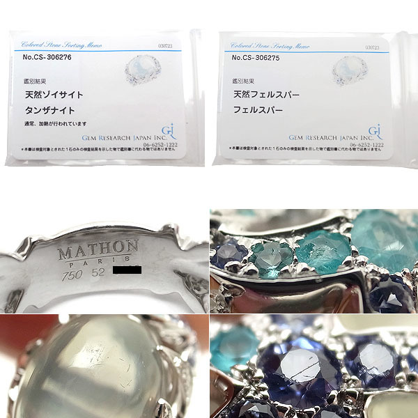 【緑屋質屋】MATHON(マットン) マルチストーン リング ムーンストーン・パライバトルマリン・タンザナイト・ダイヤ【中古】