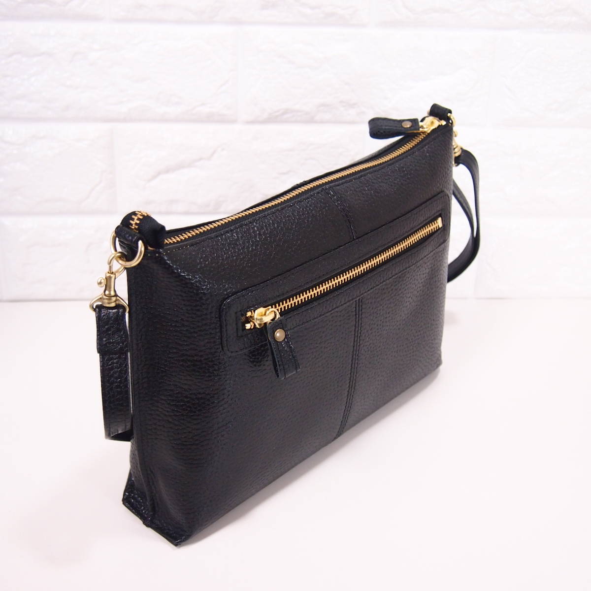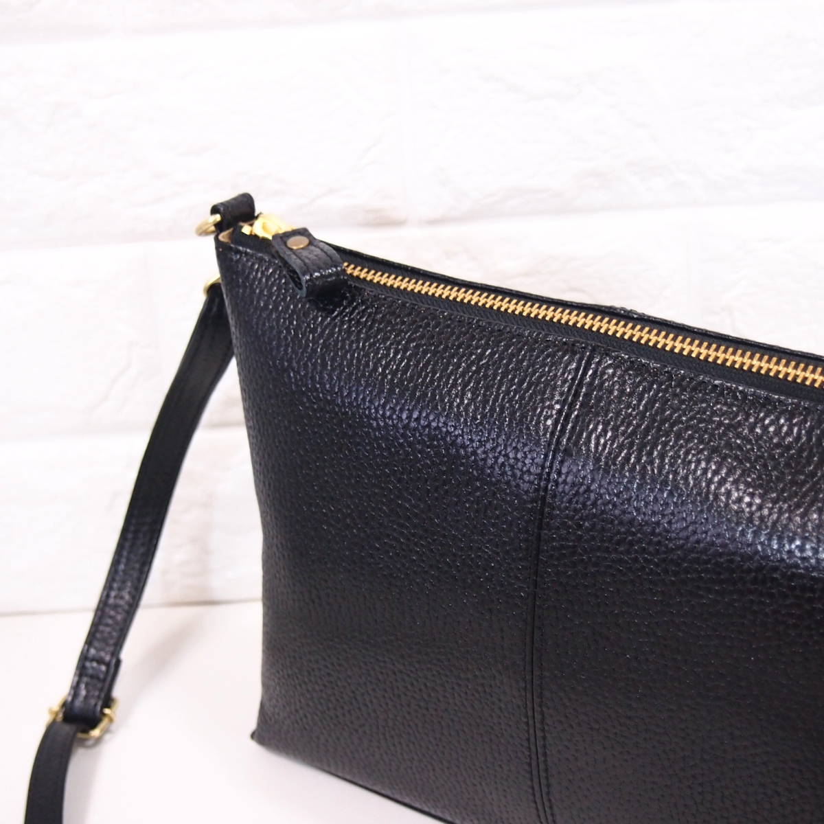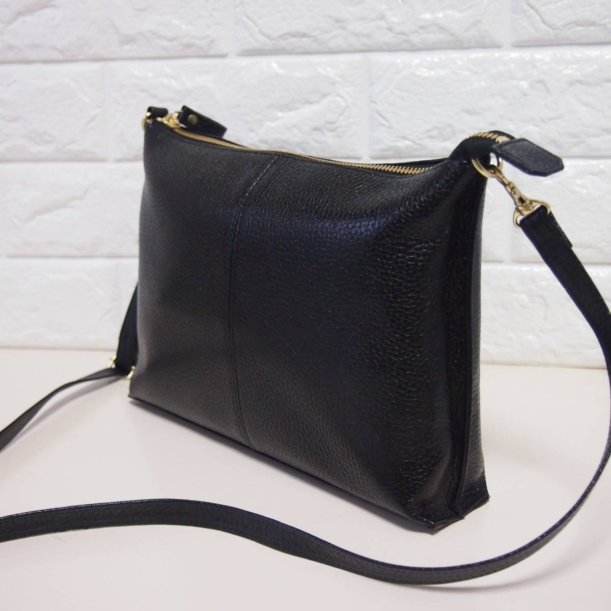 ★ハンドメイド★日本製★本革★ハンドル付き(手提げ)・斜め掛けショルダーバッグ★クロ色★ゴールド金具★ タブレットサイズ★