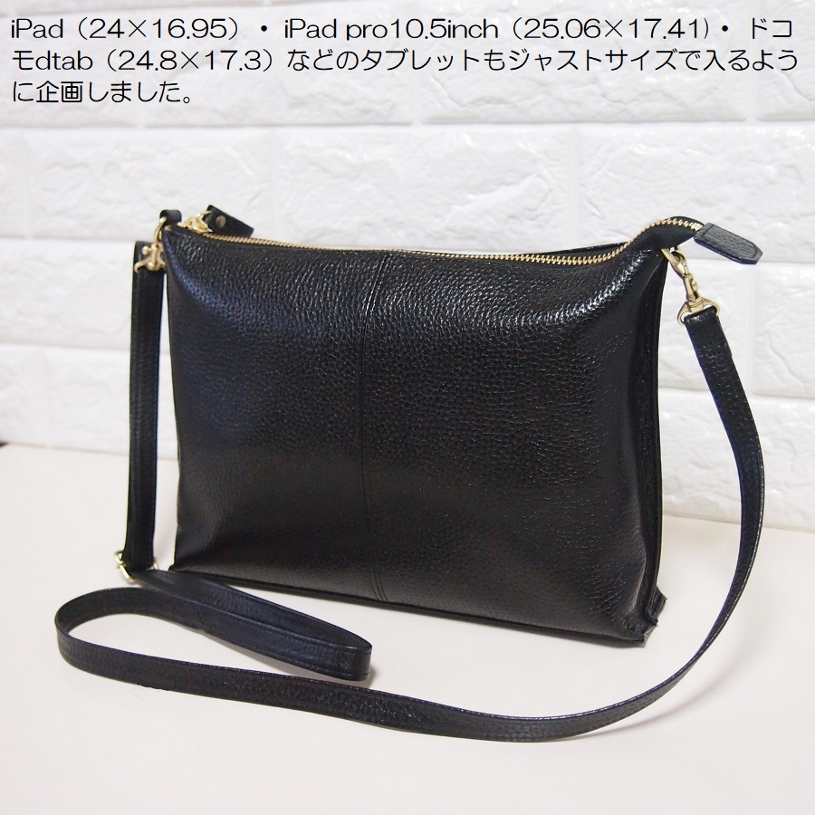 ●このバッグはiPad(24×16.95)・ iPad pro10.5inch(25.06×17.41)・ ドコモdtab(24.8×17.3)などのタブレットもジャストサイズで入るように企画しました。タブレットが入って、コンパクトなバッグをお探しに人にはピッタリですね。