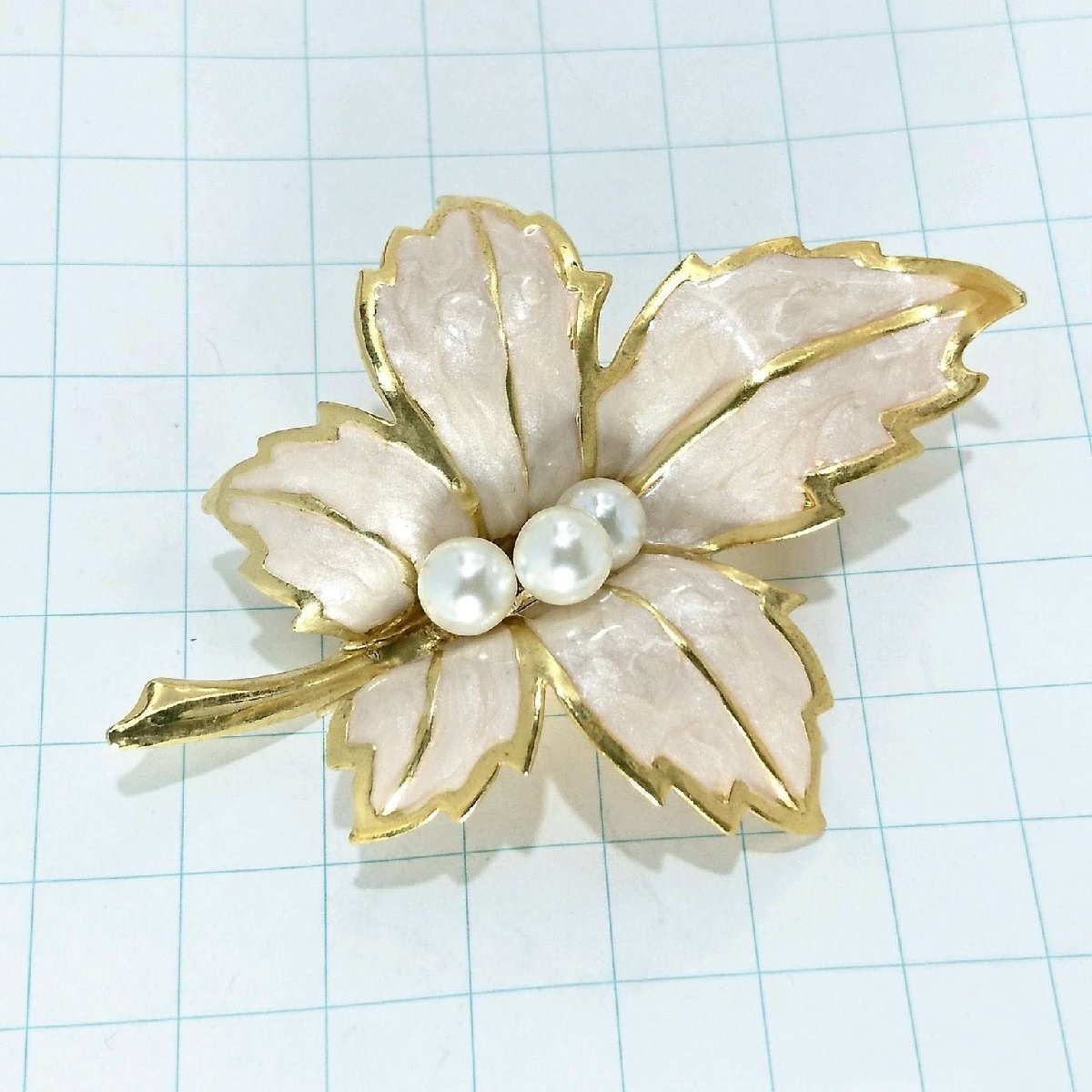 送料無料)ビンテージ☆七宝仕上げ 葉っぱモチーフ☆アンティーク ブローチ A15882