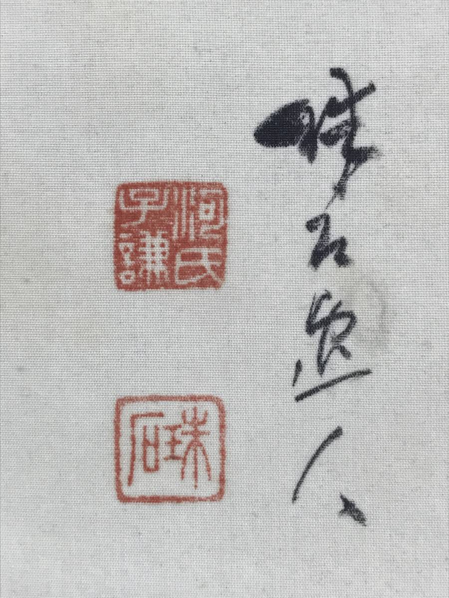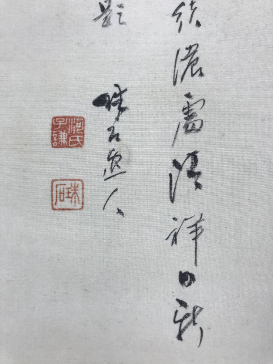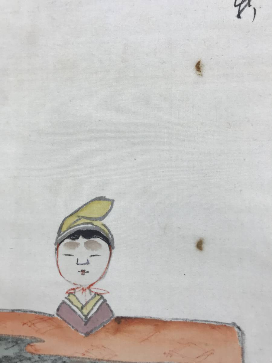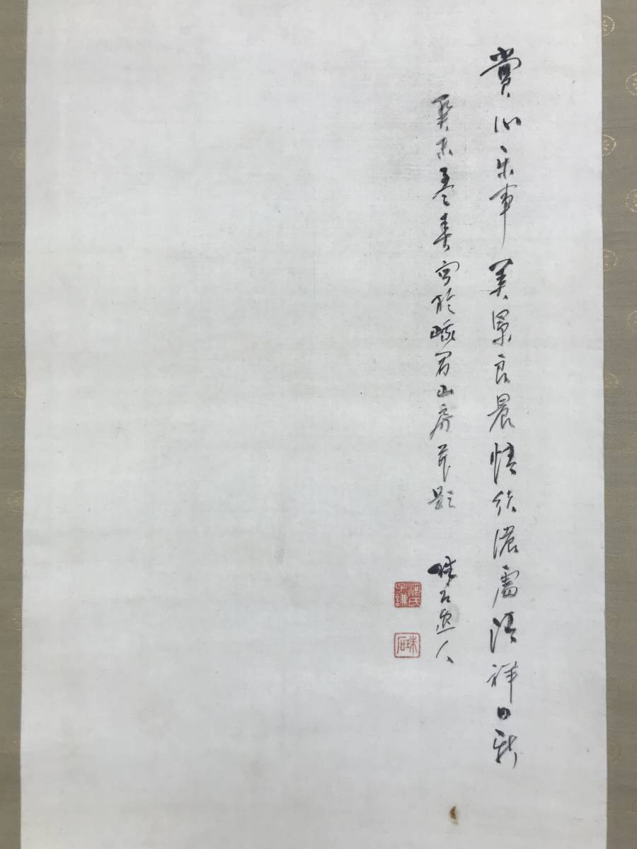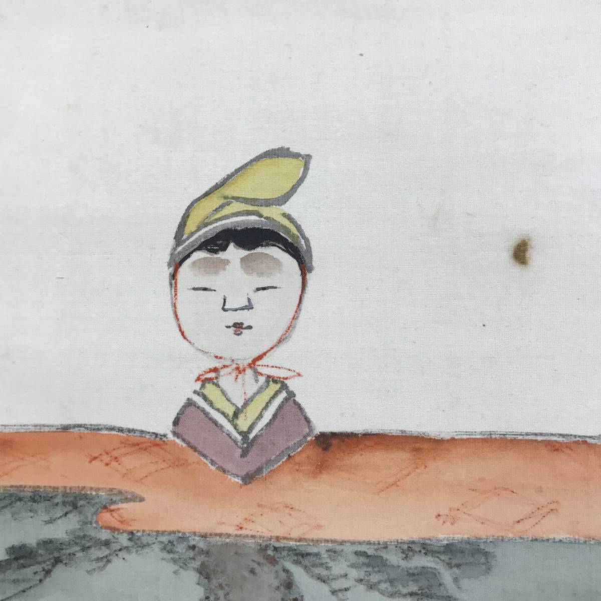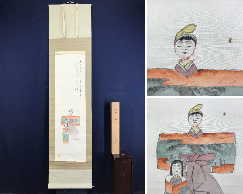 【作品状態】 本紙は絹本肉筆です。 本紙は薄汚れ、二ヶ所に小シミあります。表装は概ね良好です。