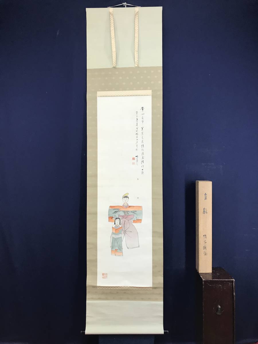 真作/珠石/立雛図/ヒナ図//掛軸☆宝船☆AD-452