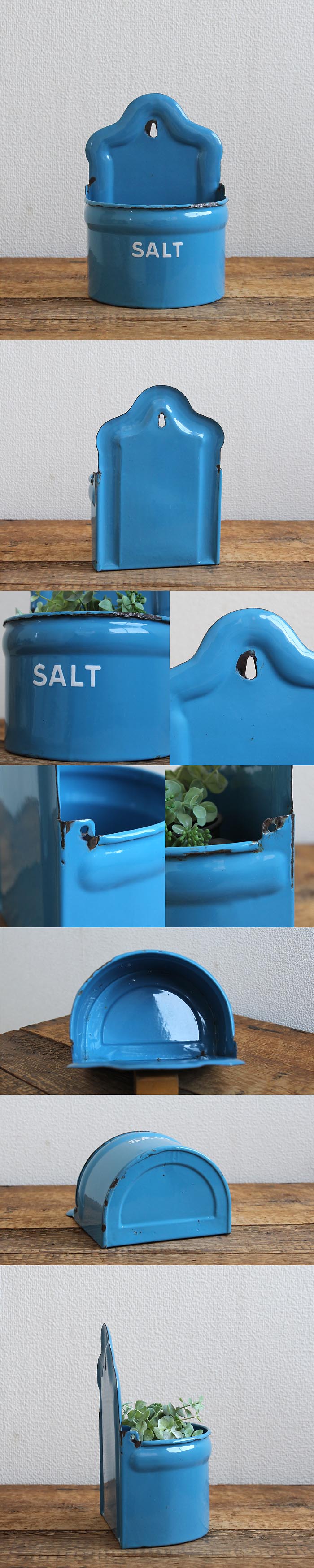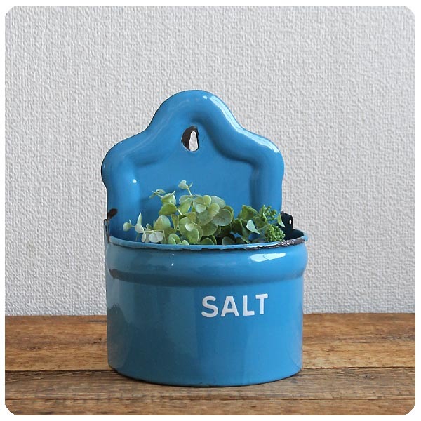 イギリス アンティーク ホーロー セル缶 ソルト缶 壁掛け エナメル雑貨 フラワーベース「SALT」V-767