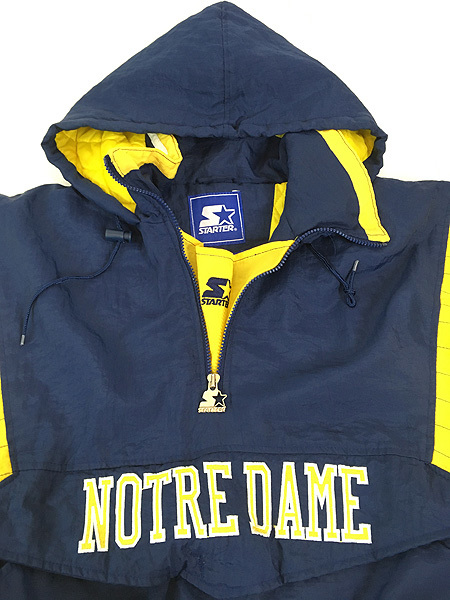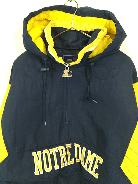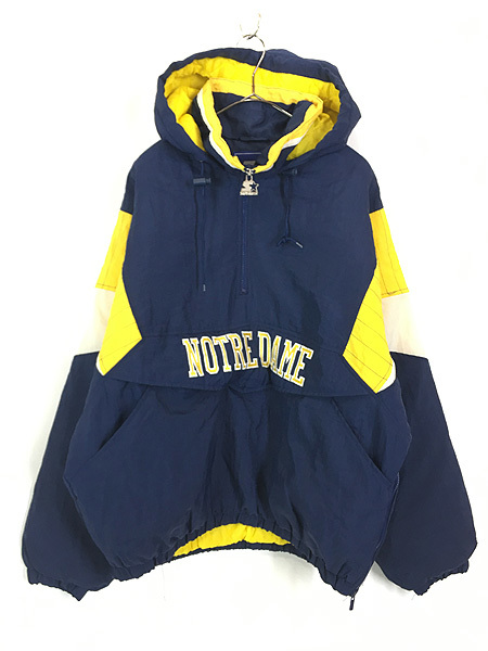 ノートルダム大学「ファイティング・アイリッシュ」の中綿入りプルオーバーカレッジアメフトジャケット。