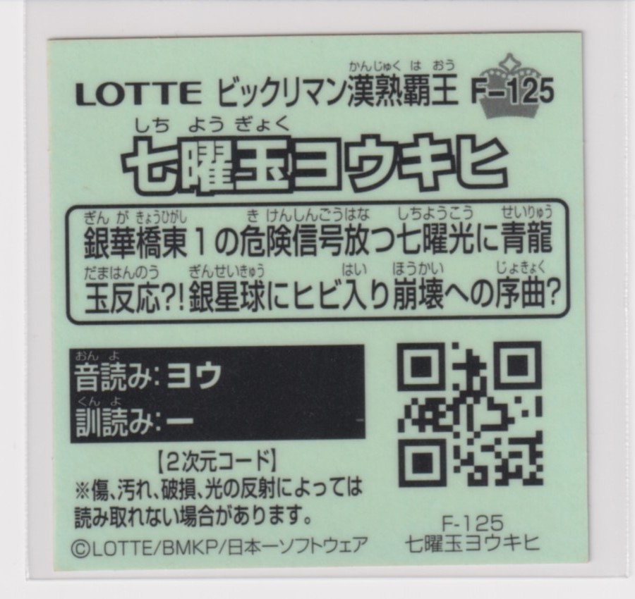 ビックリマン漢熟覇王 漢熟バトルシール 3弾  F-125 七曜玉ヨウキヒ