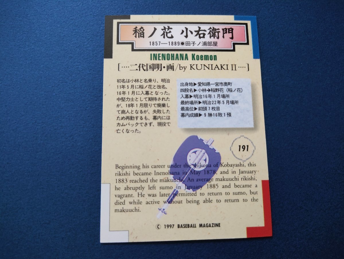 '97BBM 相撲錦絵カード 191 稲ノ花小右衛門