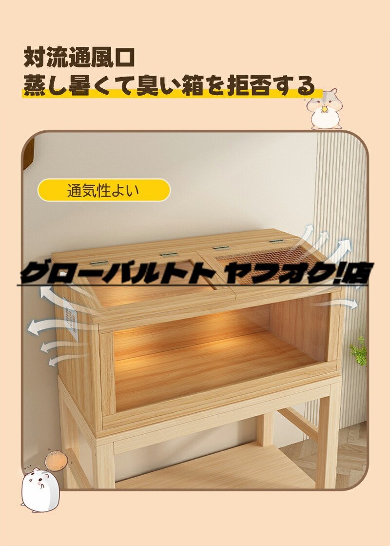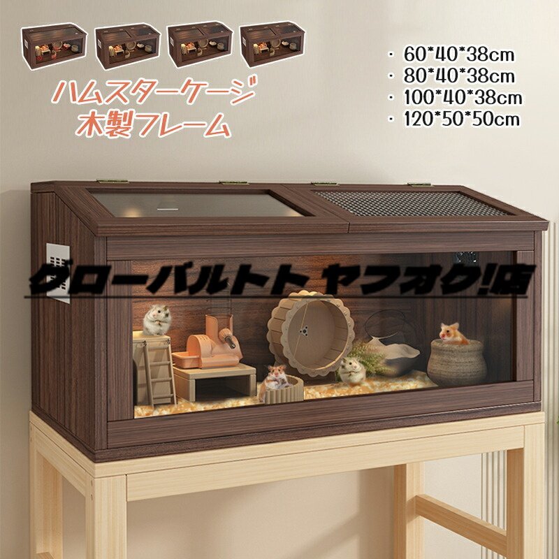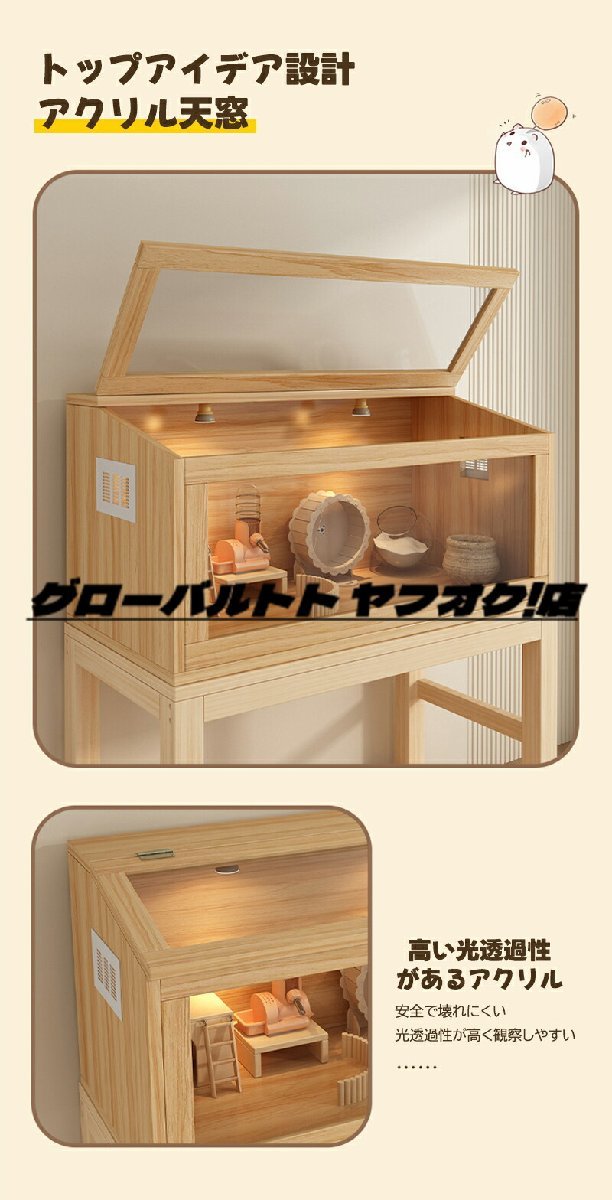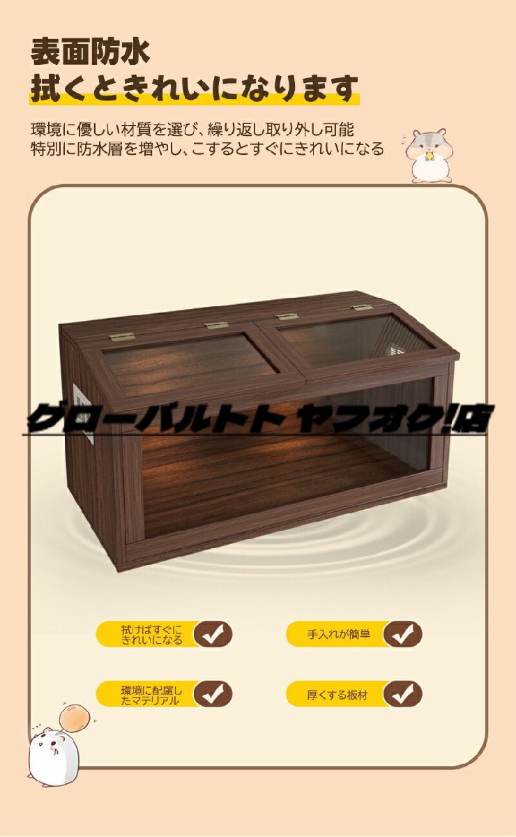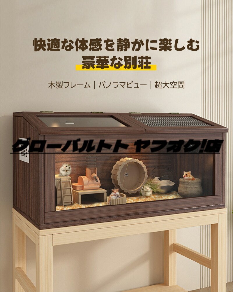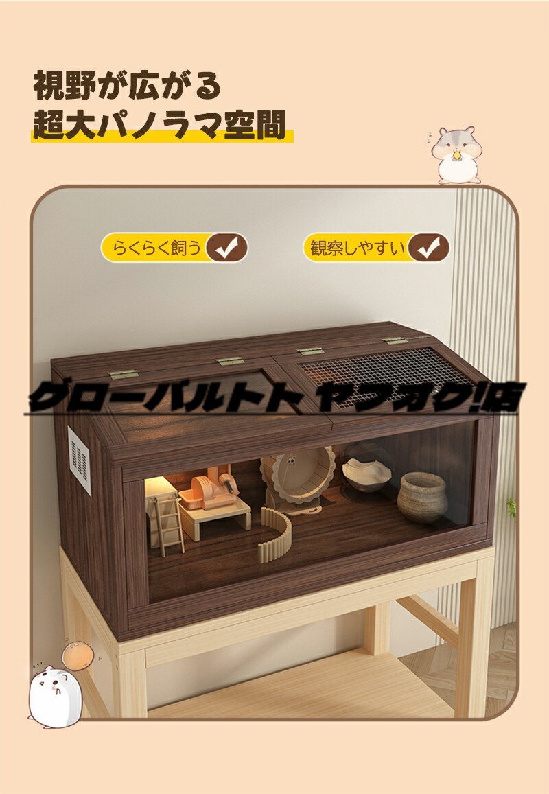 好評 新品 ハムスター ケージ 飼育ケージ 給餌ケージ 大きめ モルモット リス ペット 小動物 透明 通気 脱出防止 木製フレーム 80*40*38cm