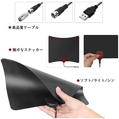 室内アンテナ ブラック HDTVアンテナ 120KM受信範囲 薄型
